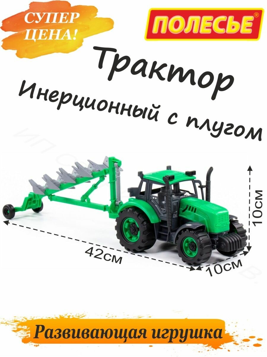 10 цен на Игрушечный инерционный трактор с плугом