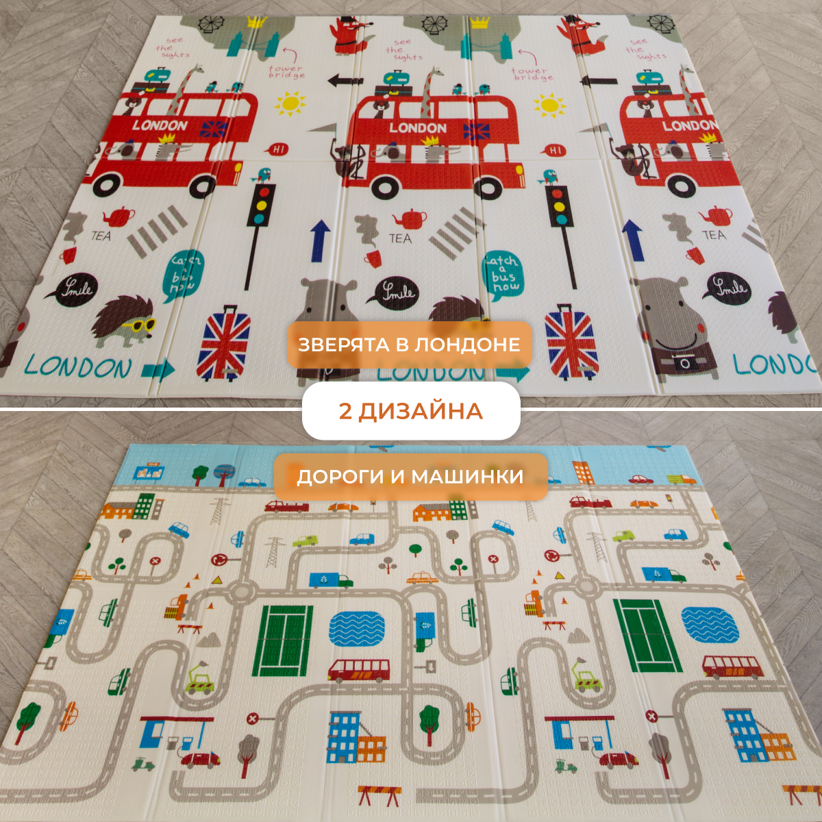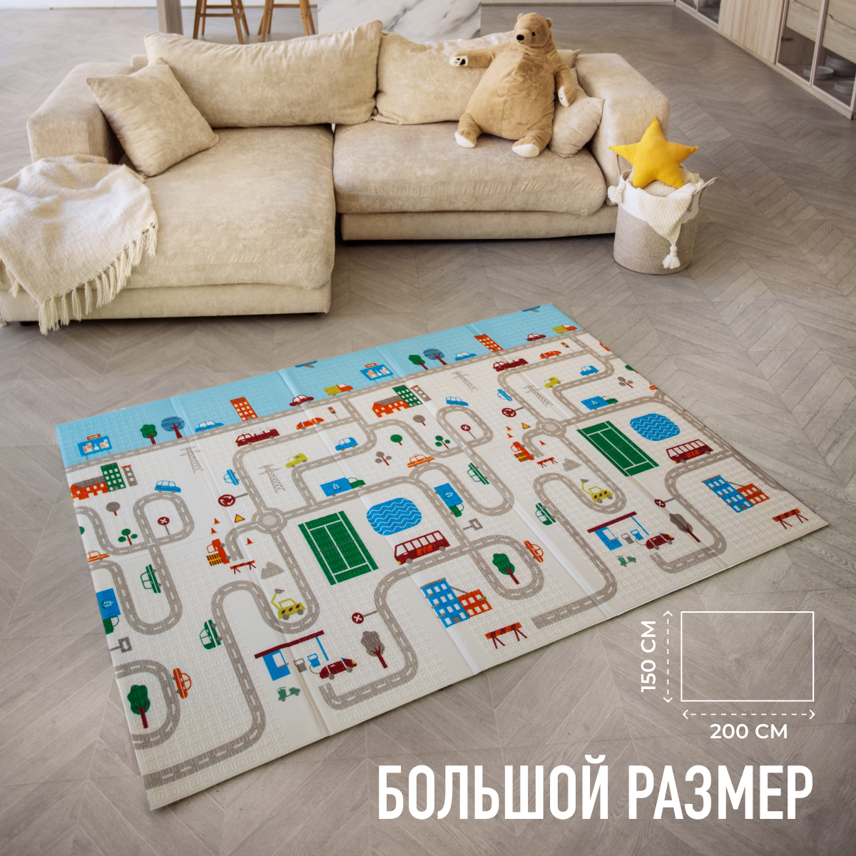 Отзывы на Детский коврик для ползания складной двухсторонний игровой термоковрик Mamagoods 150х200 Автобус и Городок