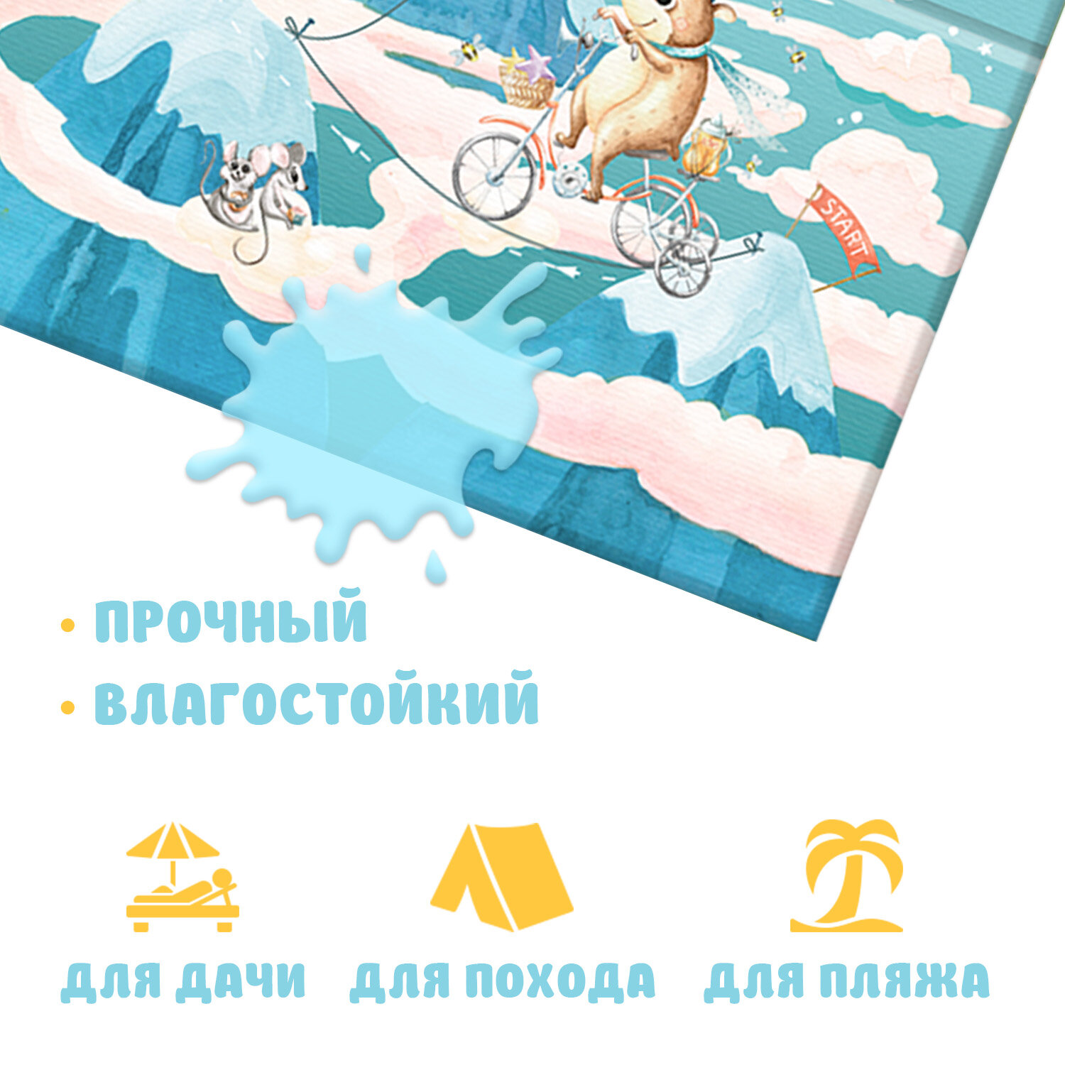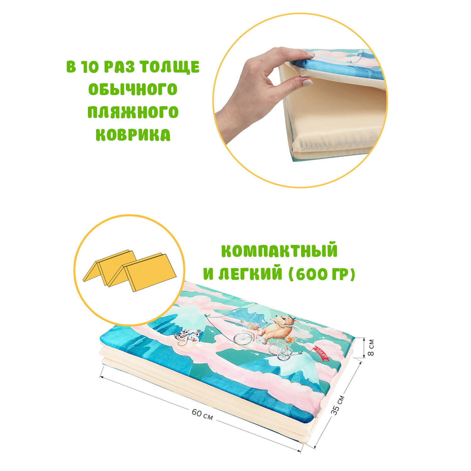 Коврик детский гимнастический Топоножка, 60*144 см, 4 блока, цвет мятный, путешастики 508 ₽