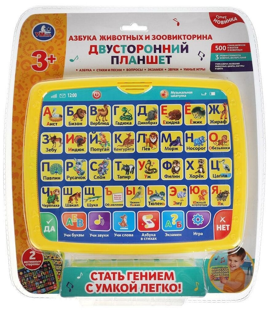 Отзывы на Двусторонний планшет азбука животных.500 стихов,вопросов,фактов.блист.бат Умка