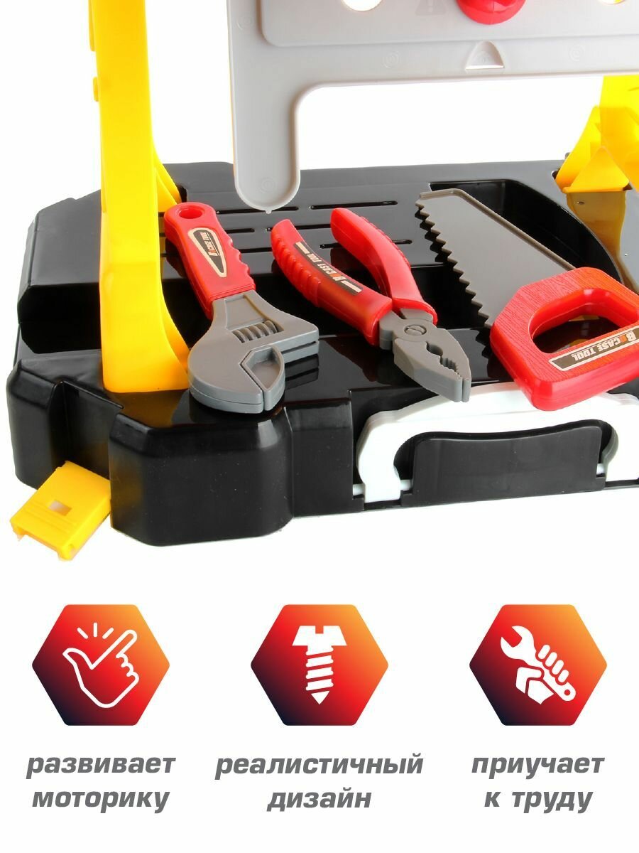 Игровой набор инструментов для мальчиков 30 предметов, Veld Co / Детская мастерская, стол верстак / Чемодан, ящик с инструментами для детей