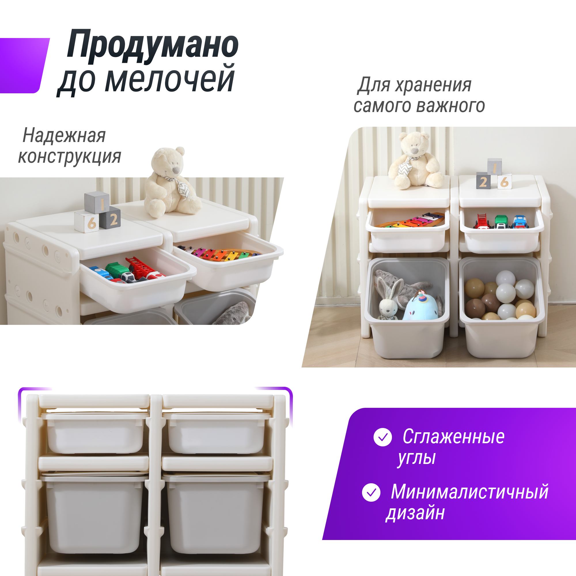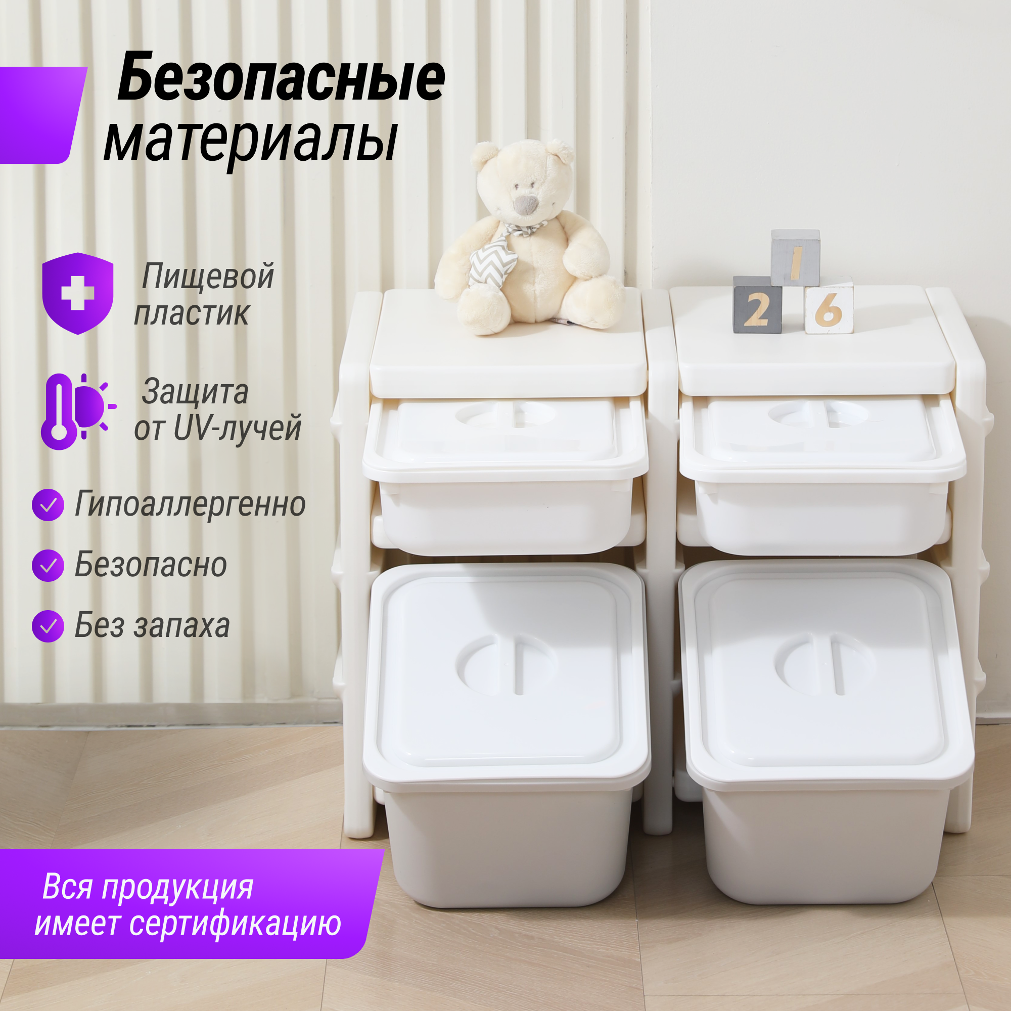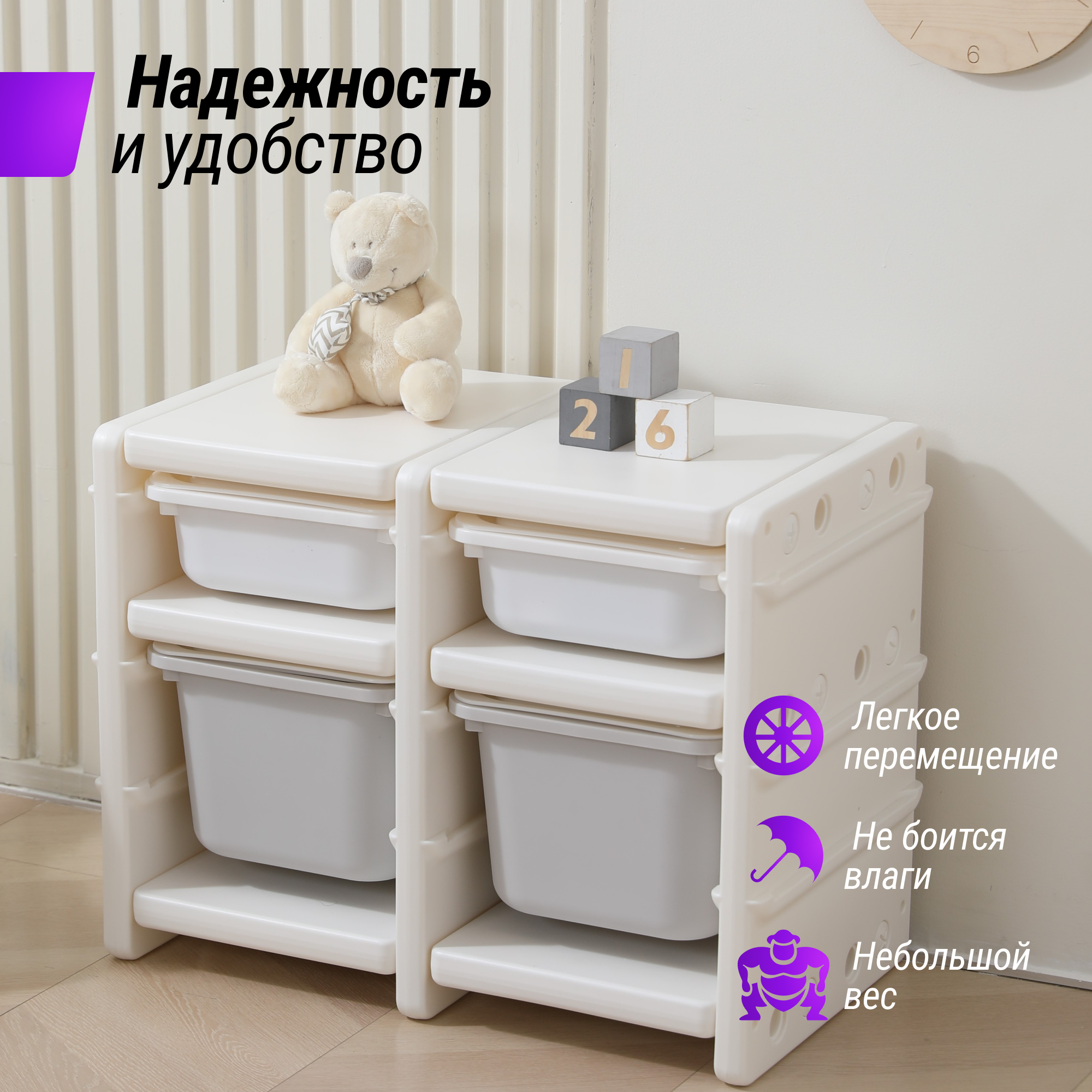 Отзывы на Стеллаж для игрушек UNIX Kids Grey 4 ящика, напольный, с корзинами, пластиковый стеллаж в детскую комнату для хранения