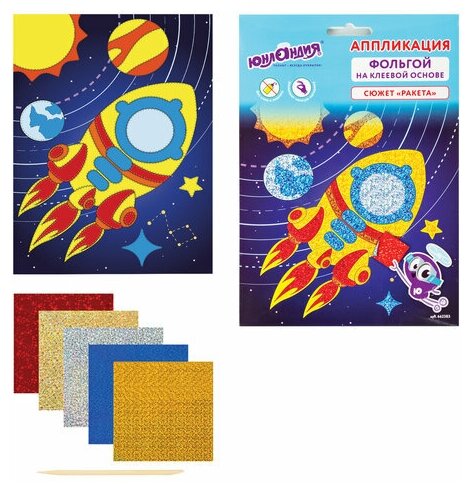 Отзывы на Комплект 10 шт, Набор для творчества "Аппликация из фольги", "Ракета", самоклеящаяся основа 20х15 см, юнландия, 662383