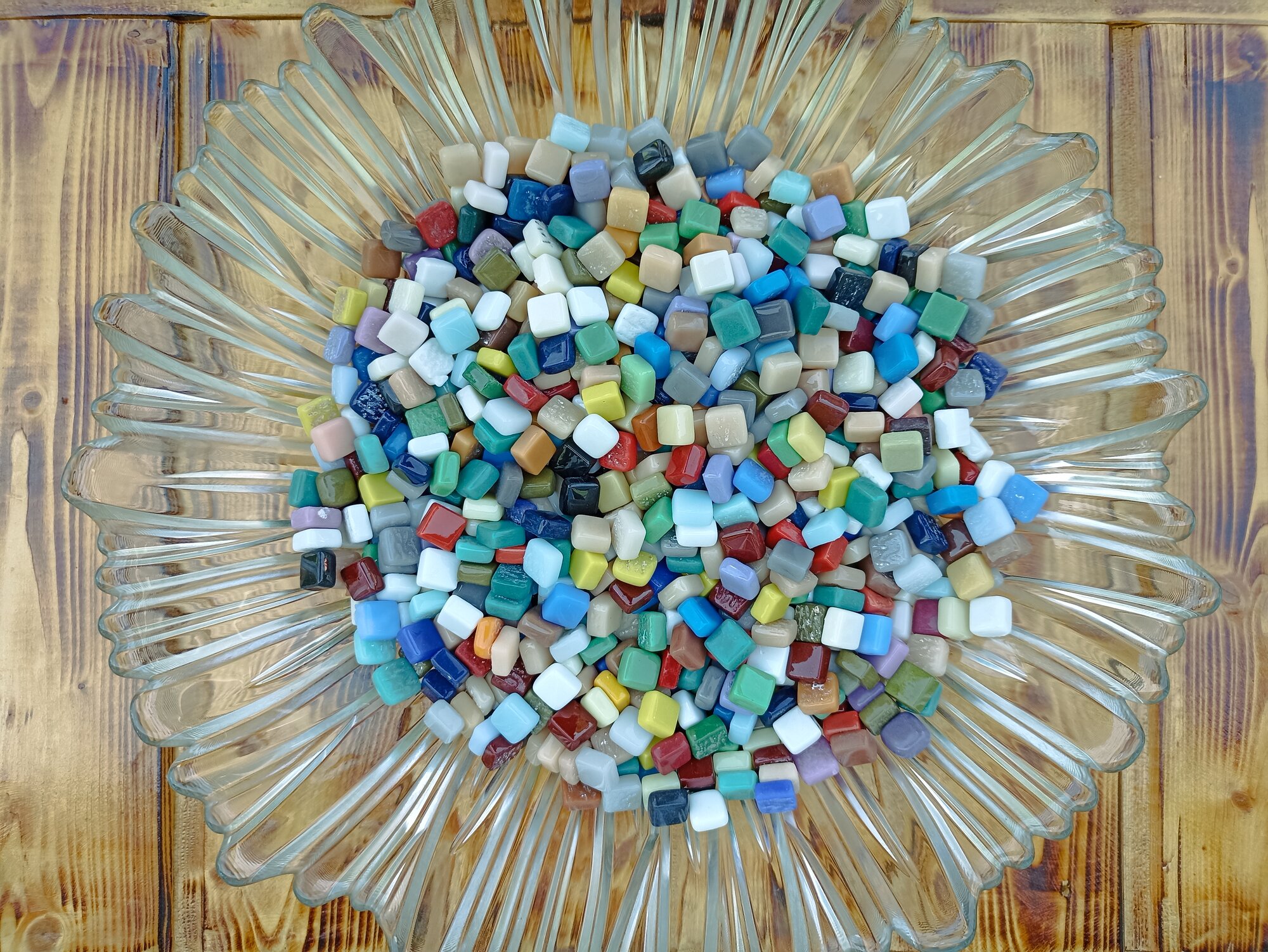 Смальта для мозаики, творчества и садового декора. Размер: 12х12х5мм (+/-1мм.). 2кг., более 1000шт. информация: