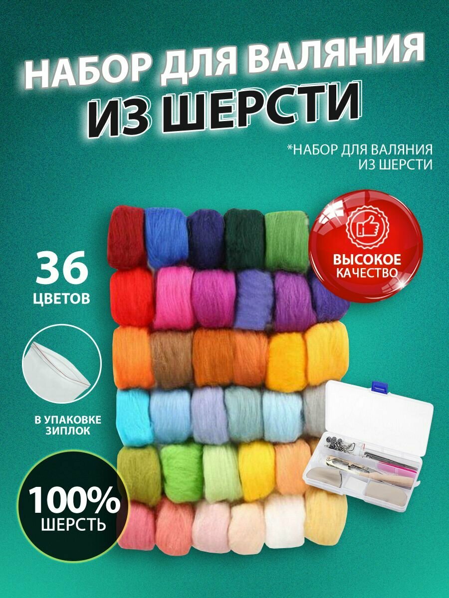 Отзывы на Набор для валяния из шерсти 36 цветов в зип - лок упаковке, для творчества, рукоделия и фелтинга