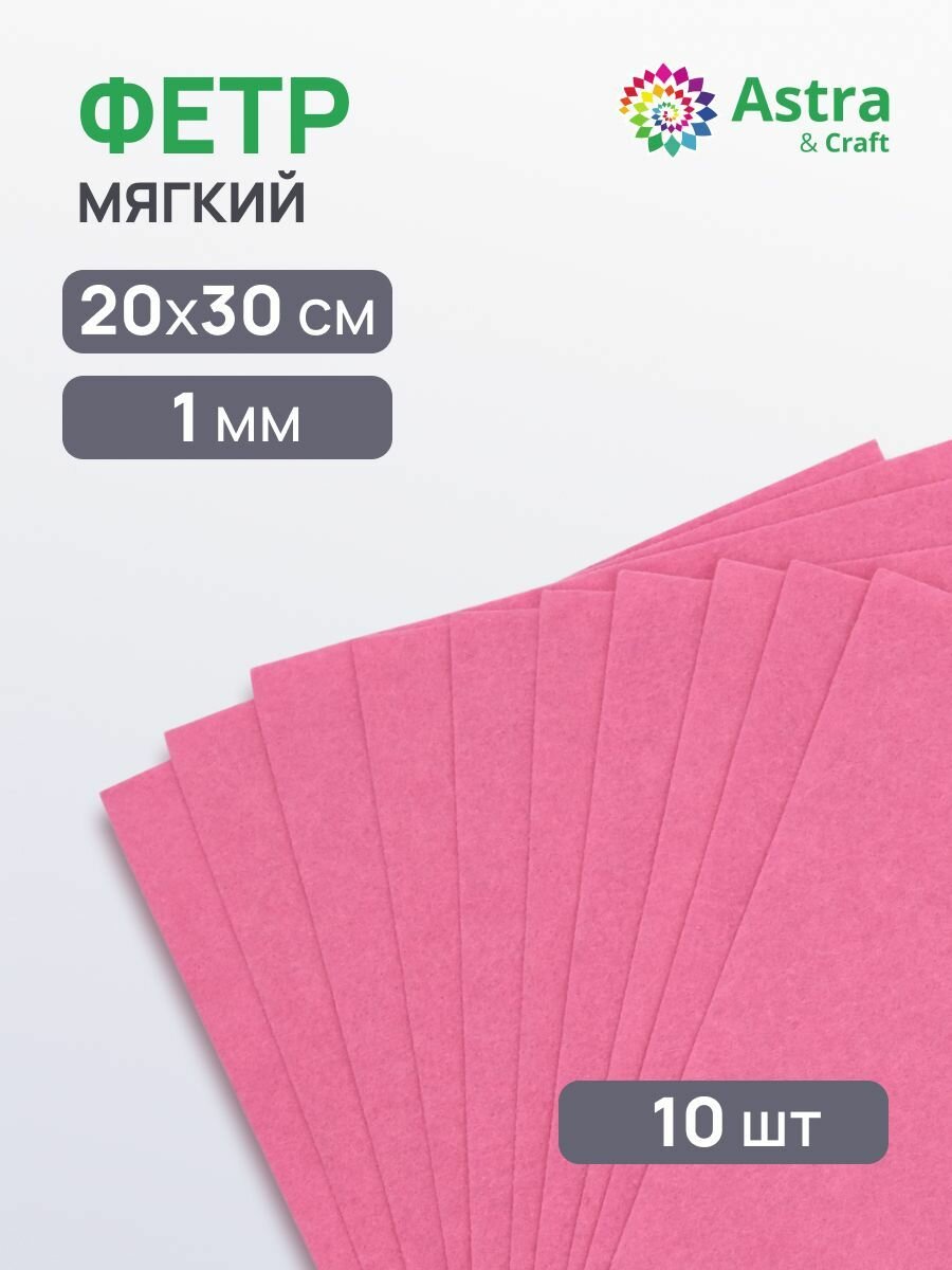 10 цен на Фетр листовой мягкий 1 мм, Astra&Craft, 20х30 см, 10 шт (AF811/YF611 розовый)