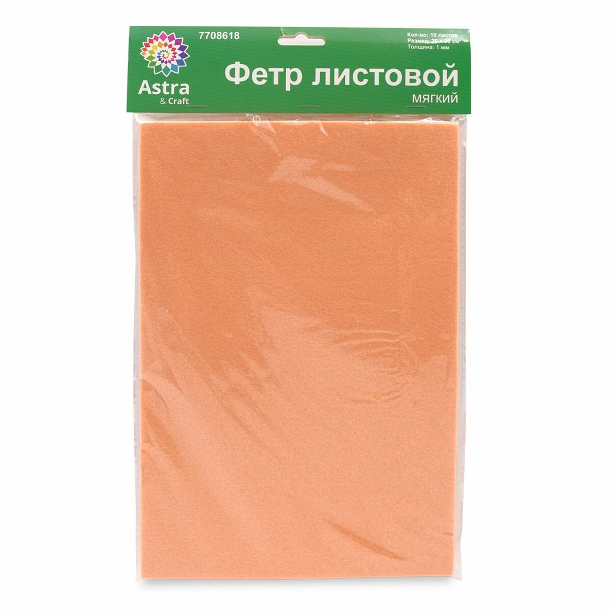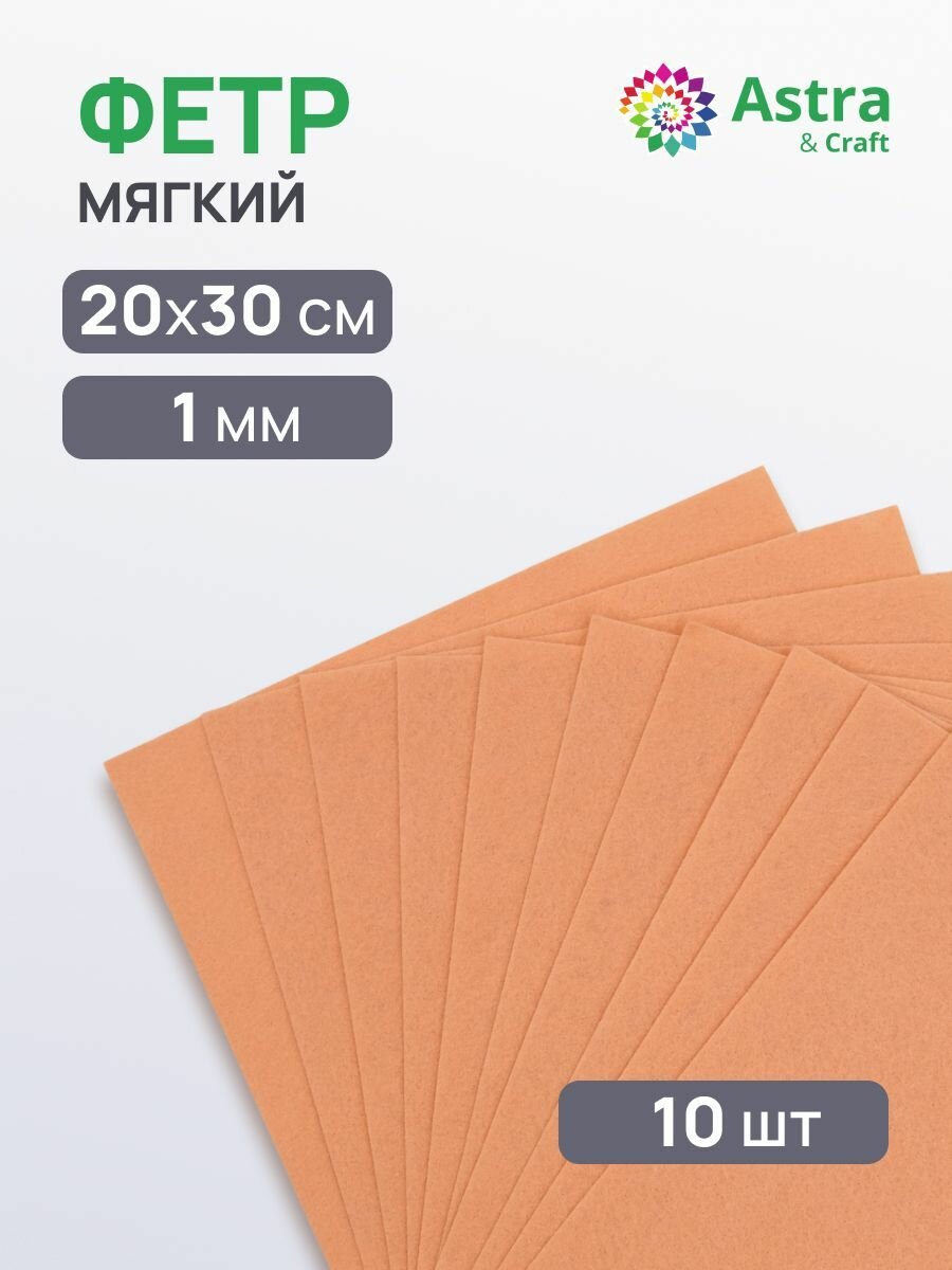 Фетр листовой мягкий 1 мм, Astra&Craft, 20х30 см, 10 шт (YF 652 персиковый) информация:
