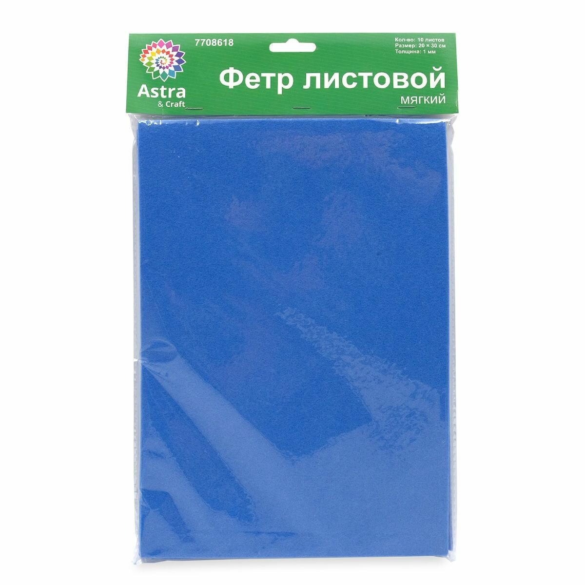 Фетр листовой мягкий 1 мм, Astra&Craft, 20х30 см, 10 шт (AF876/YF631 сапфир) 396 ₽