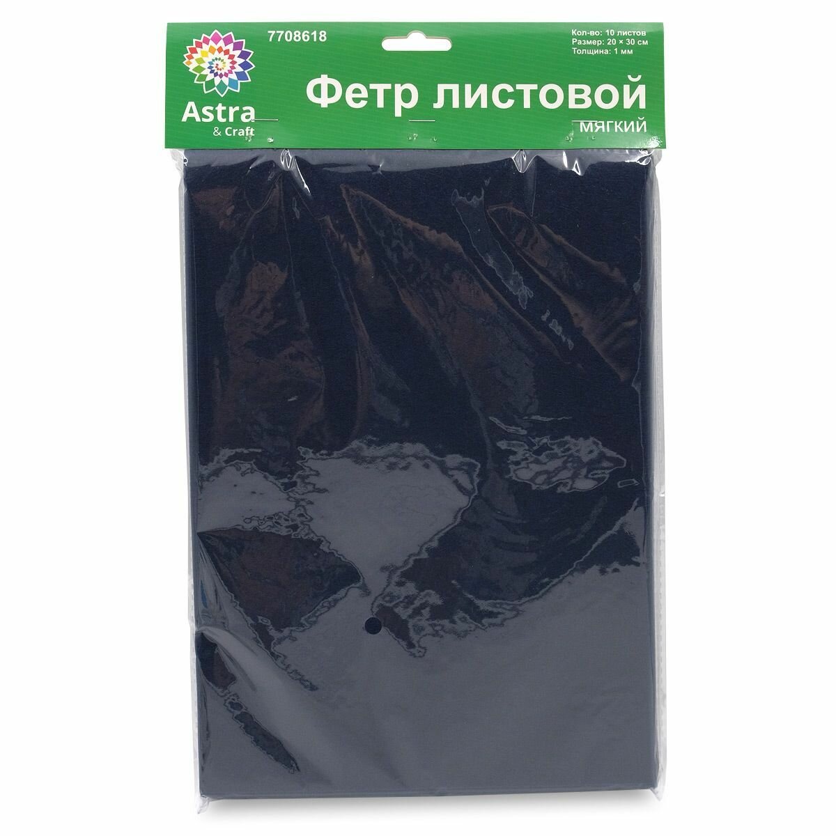 Фетр листовой мягкий 1 мм, Astra&Craft, 20х30 см, 10 шт (AF866/YF673 иссиня черный) информация: