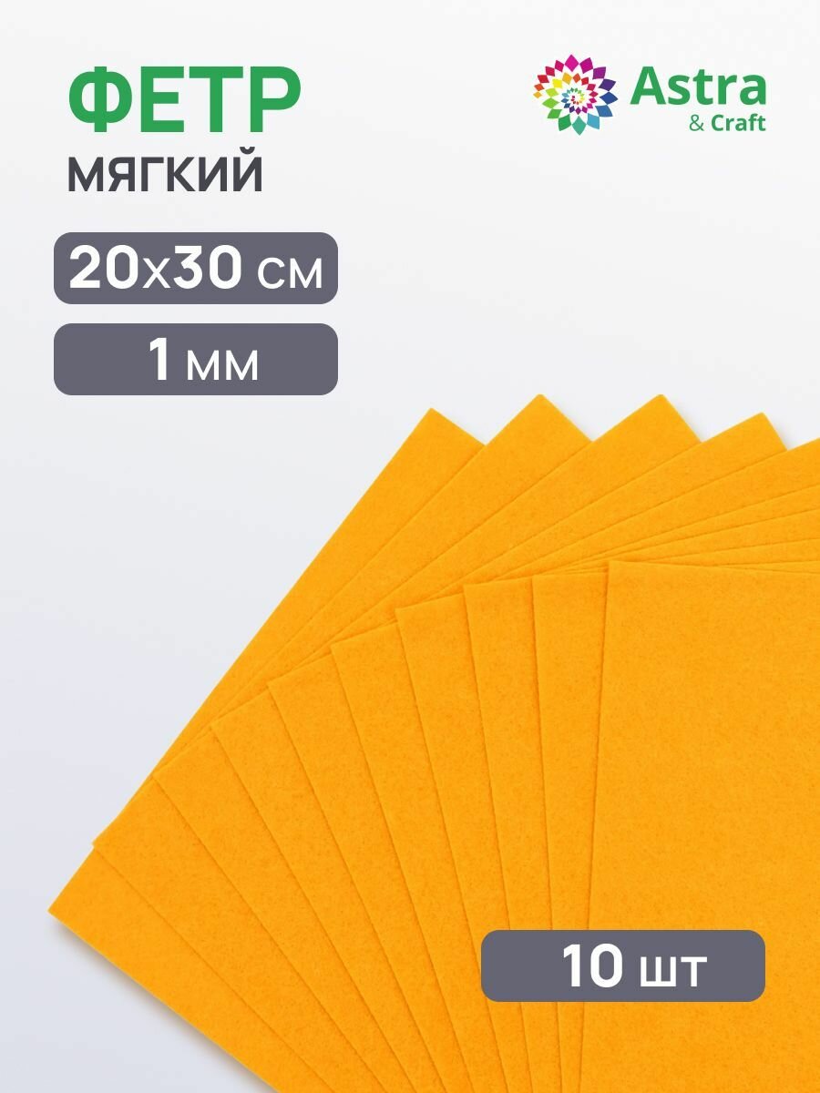 Фетр листовой мягкий 1 мм, Astra&Craft, 20х30 см, 10 шт (YF 640 желтый) информация: