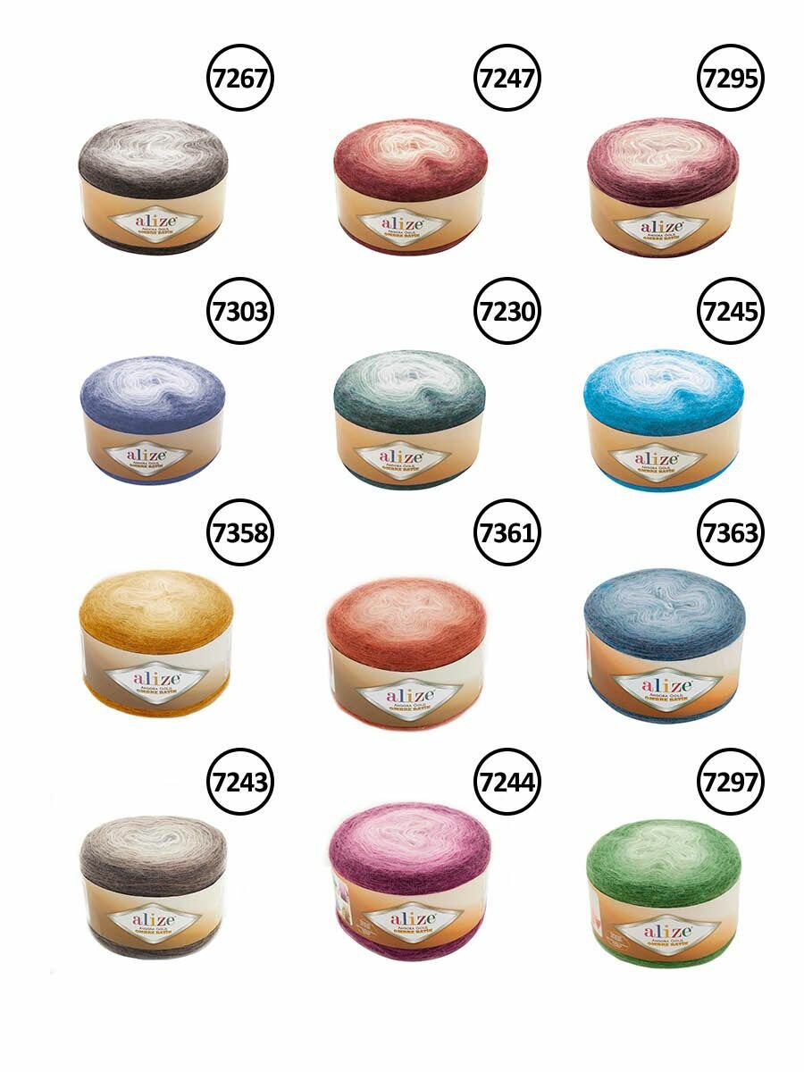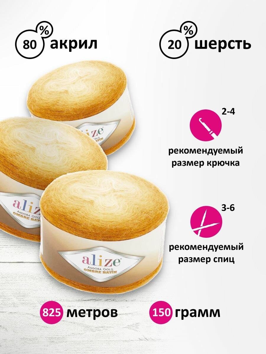 Пряжа для вязания Alize 'Angora Gold Ombre Batik' 150г, 825м (20% шерсть, 80% акрил) (7358 секционный), 4 мотка информация: