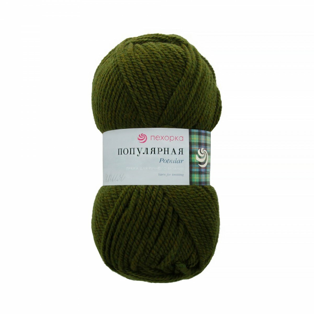 Пряжа Пехорская ПТ "Популярная" 50% шерсть, 50% акрил 100 г 133 м ± 8 м №013 т.оливковый