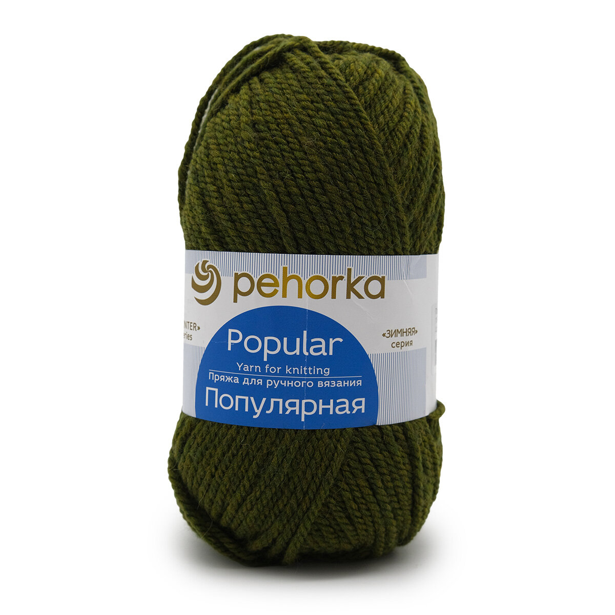 Пряжа Пехорская ПТ "Популярная" 50% шерсть, 50% акрил 10 шт.х100г 133м №013 тёмно-оливковый информация: