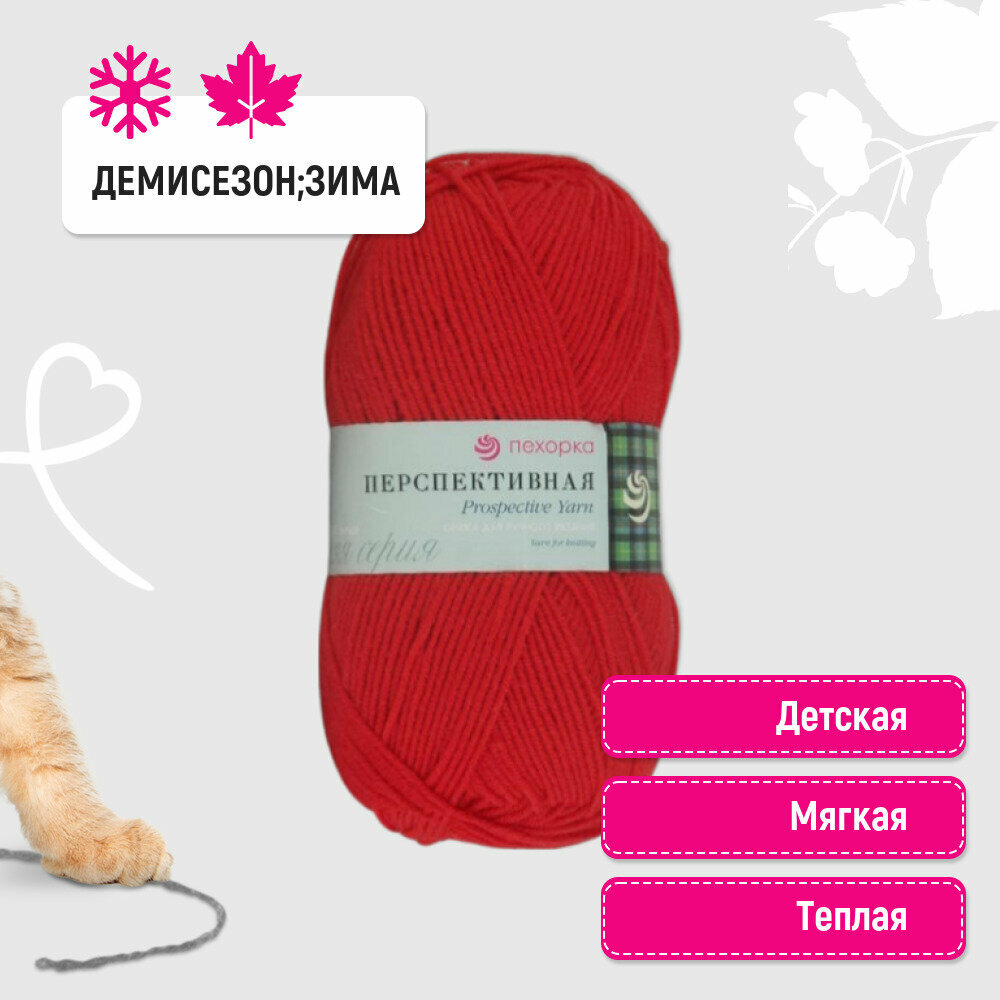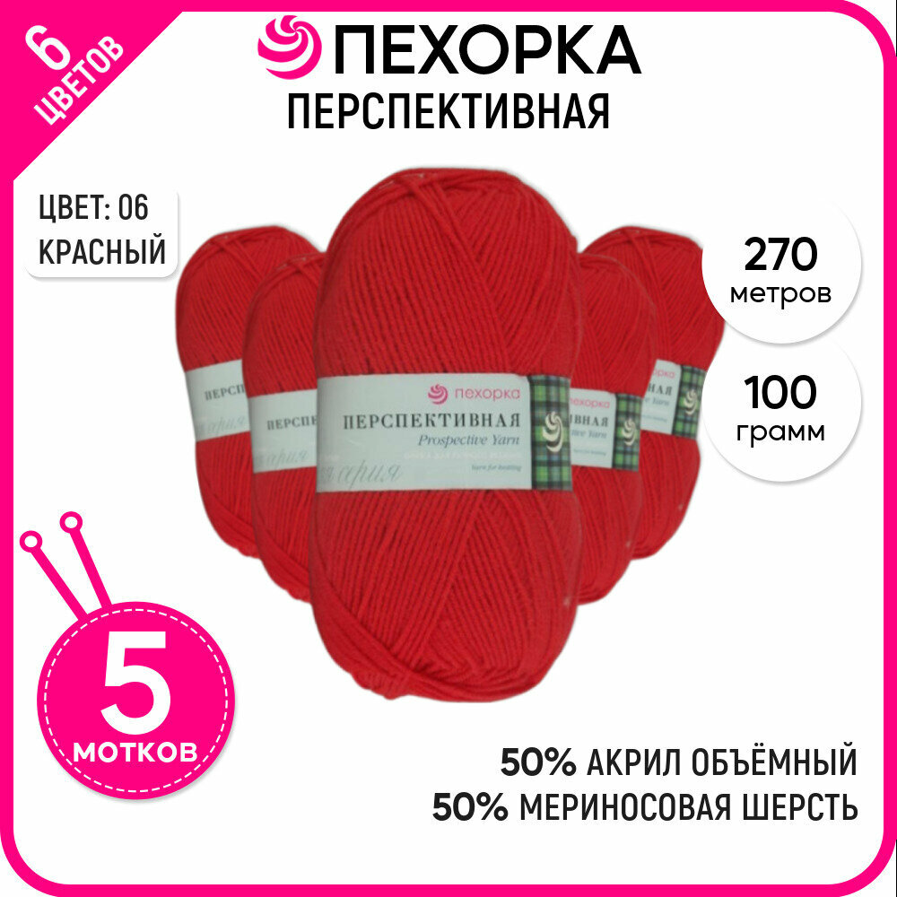 Пряжа для вязания Пехорка 'Перспективная' 100г, 270м (меринос, акрил высокообъемный) (06 красный), 5 шт информация: