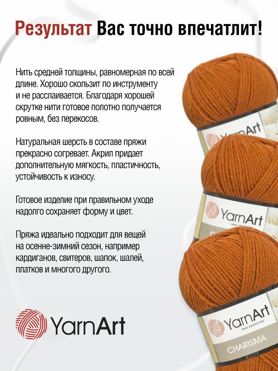 Пряжа для вязания YarnArt 'Charisma', 100г, 200м (75% шерсть, 25% акрил) (3027 терракот), 5 мотков информация: