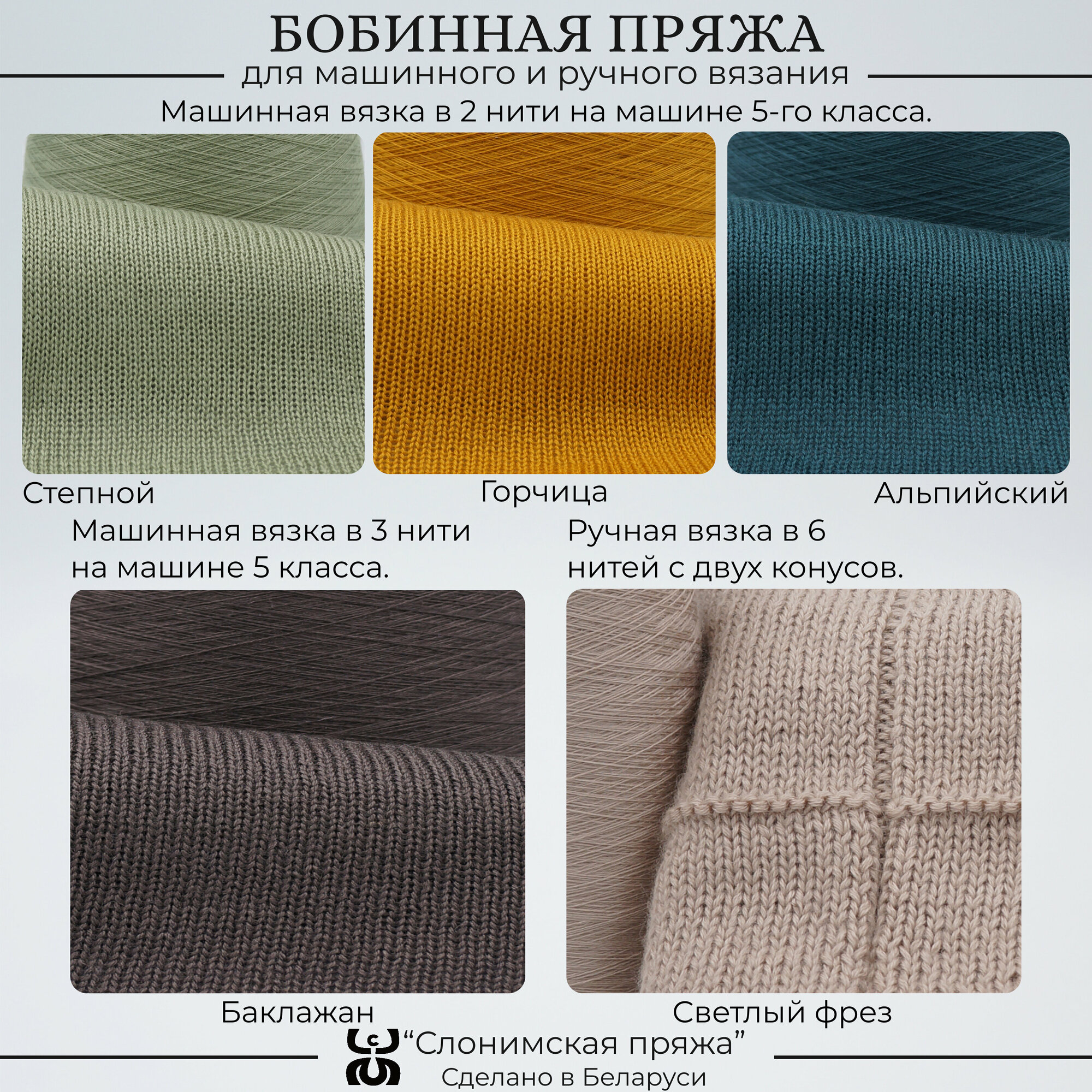 10 цен на Бобинная пряжа "Слонимская пряжа" нитки для ручного вязания спицами, крючком, на вязальной машине, 2 конуса по 130гр, 50% хлопок - 50% акрил.