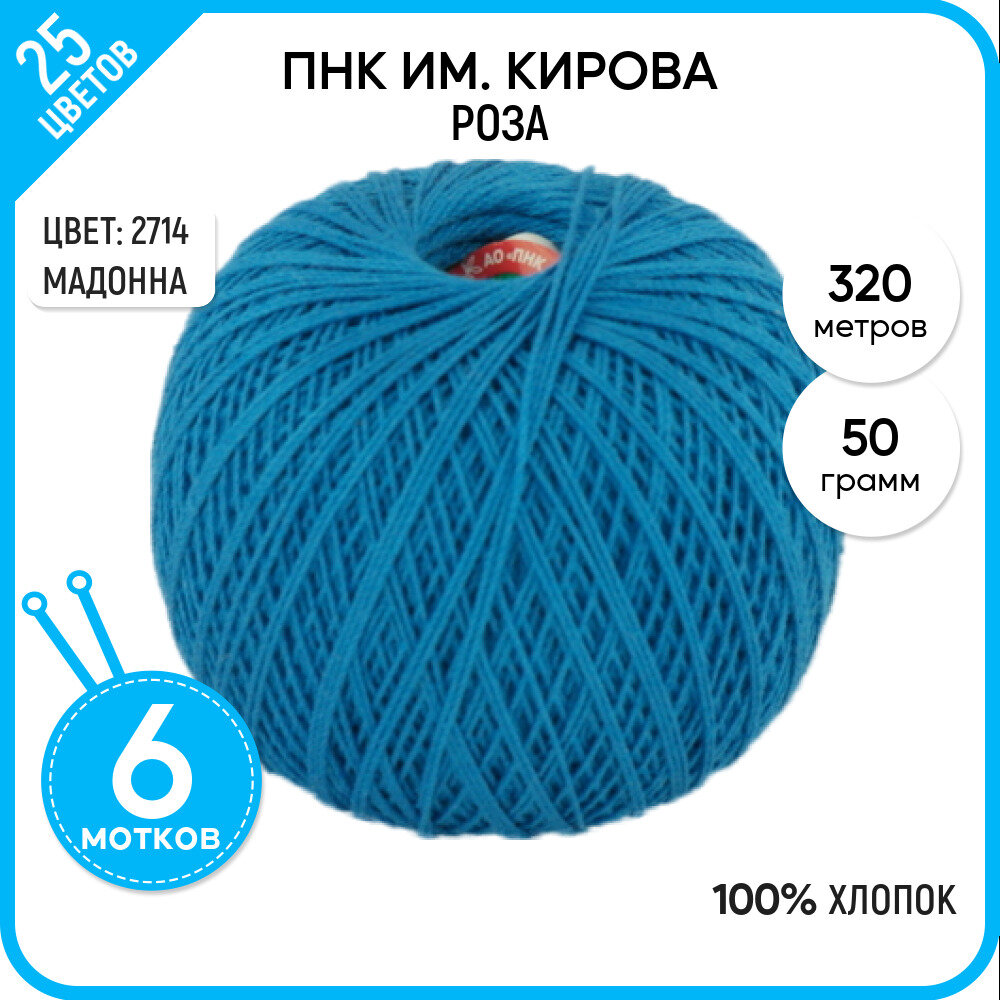 Пряжа ПРЯДИЛЬНО-НИТОЧНЫЙ КОМБИНАТ ИМЕНИ С.М. КИРОВА Роза, 100 % хлопок