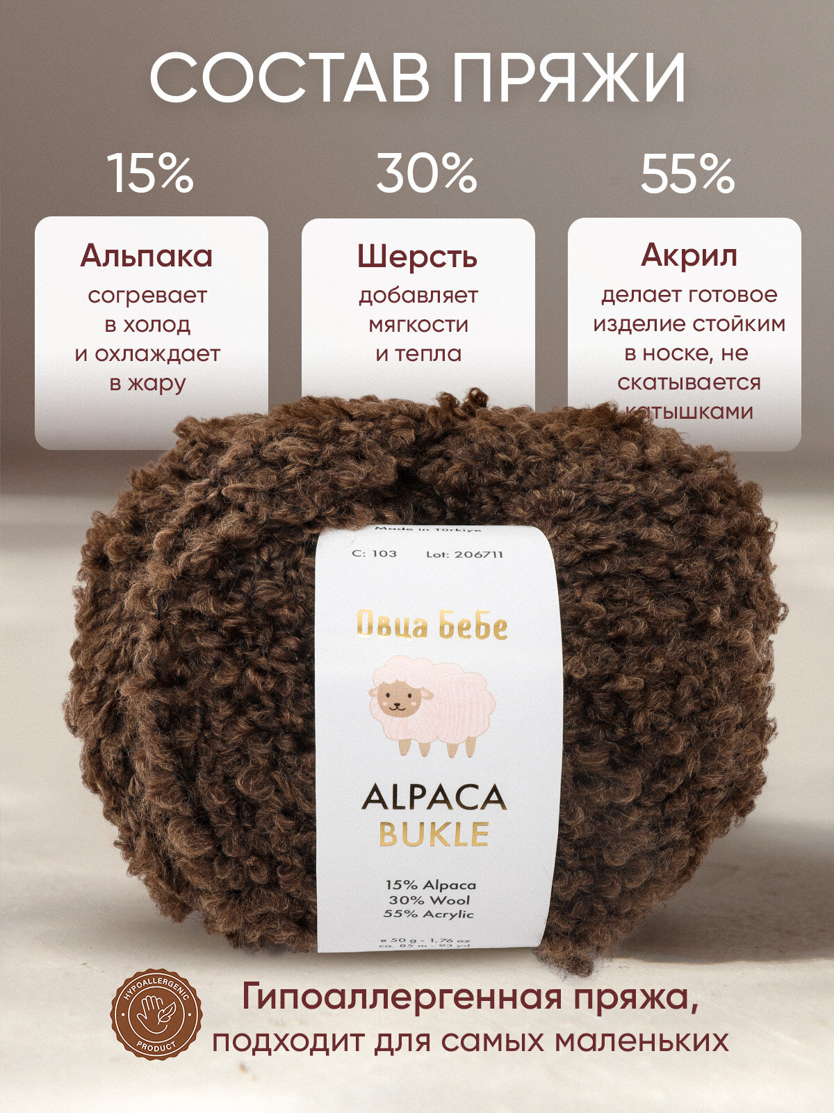 Отзывы на Пряжа для вязания Буклированная Alpaca Bukle, цвет горький шоколад (набор из 5шт)