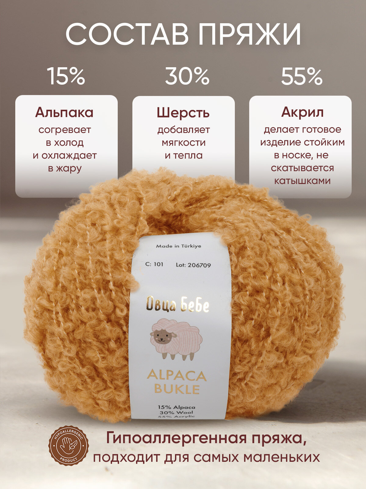 Отзывы на Пряжа для вязания Буклированная Alpaca Bukle, цвет верблюжий (набор из 5шт)