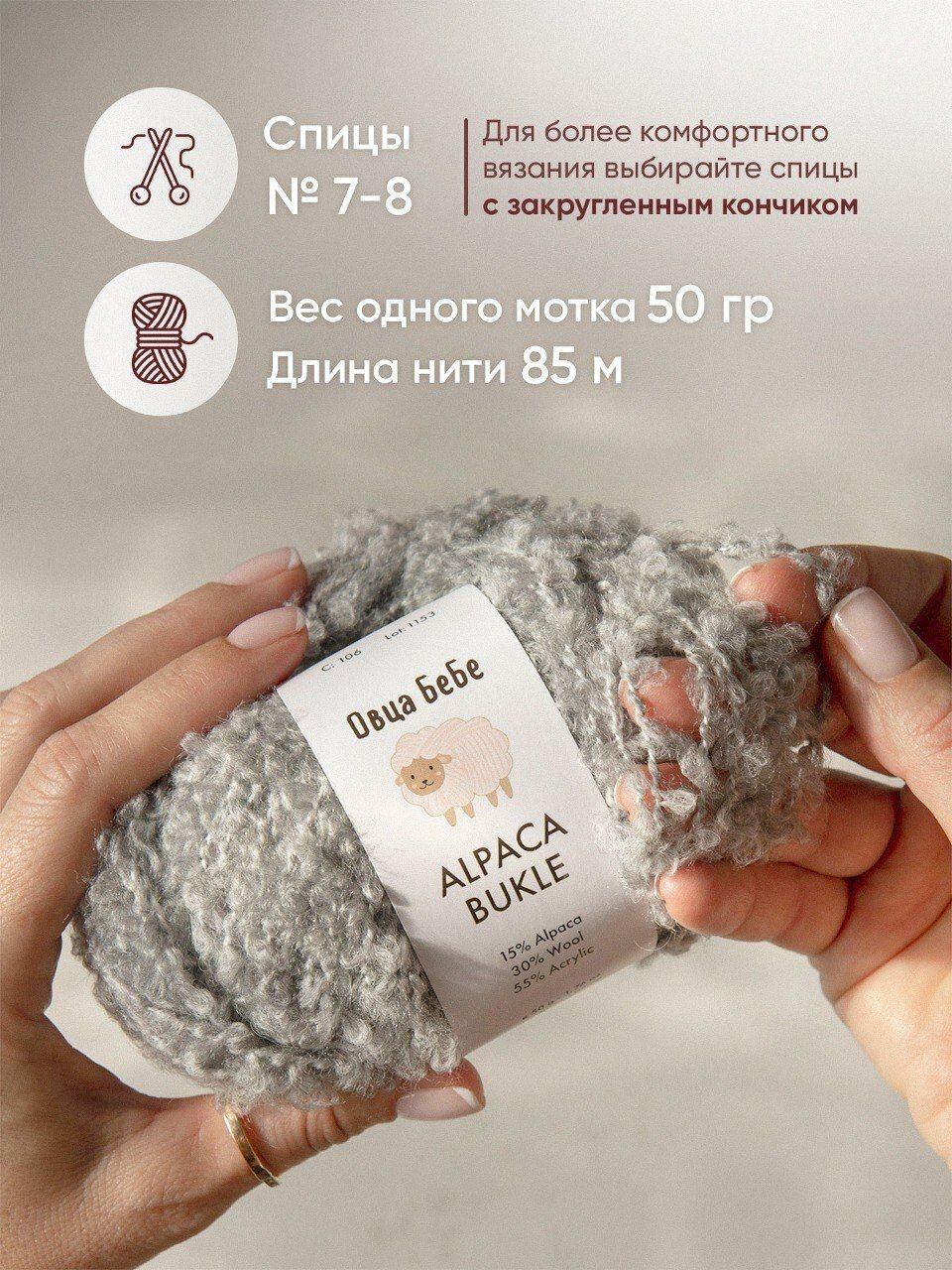 Пряжа для вязания Буклированная Alpaca Bukle, цвет серебристо-серый (набор из 5шт) информация: