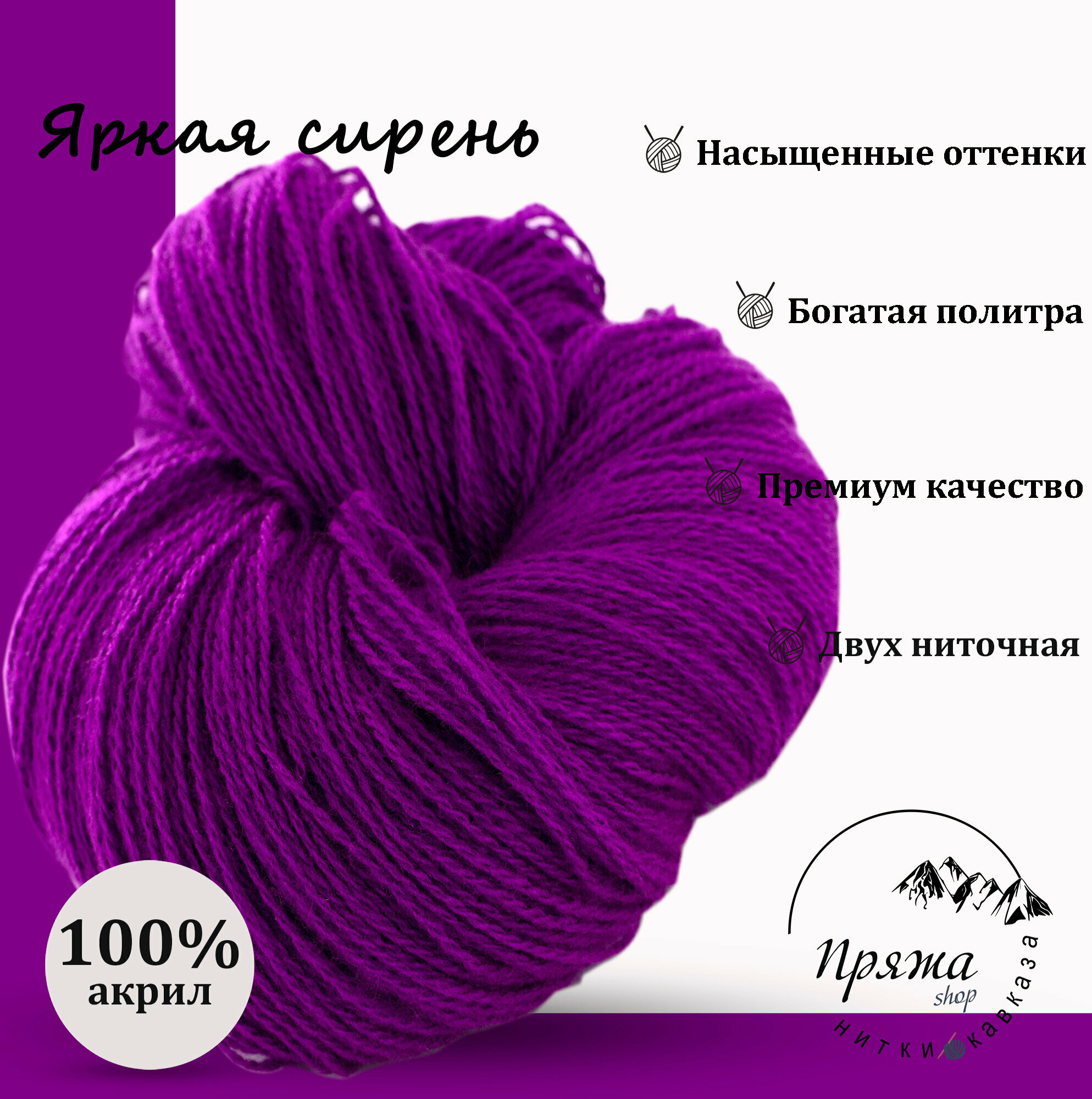 10 цен на Карачаевская пряжа мягкая в пасмах нитки 100 % акрил для вязания 600-650м/250-280гр, Яркая сирень
