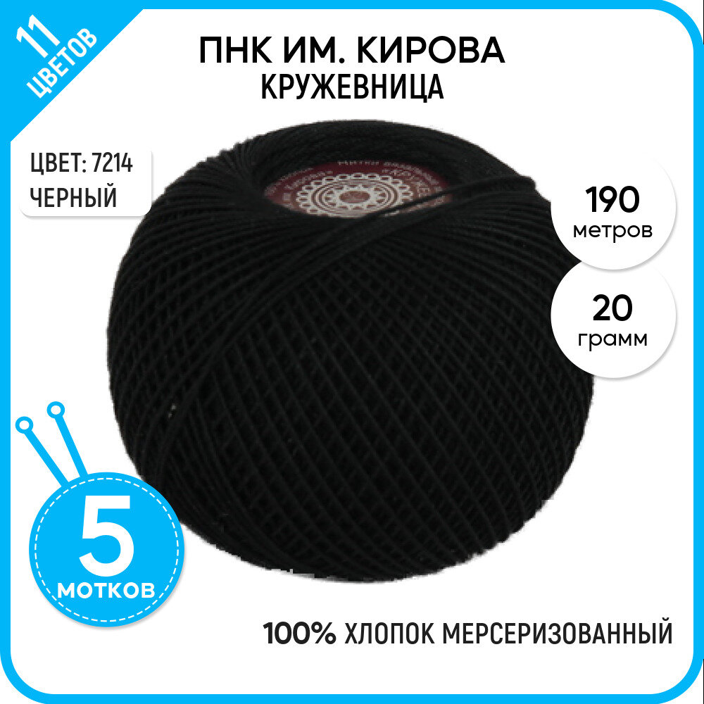 Пряжа ПНК Кирова Кружевница черный (7214), 100%мерсеризованный хлопок, 190м, 20г, 5шт информация: