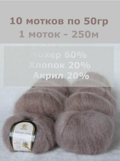 10 цен на Пряжа для вязания Камтекс 'Мохер голд', 50г, 250м (60% мохер, 20% хлопок, 20% акрил) (113 какао), 10 мотков
