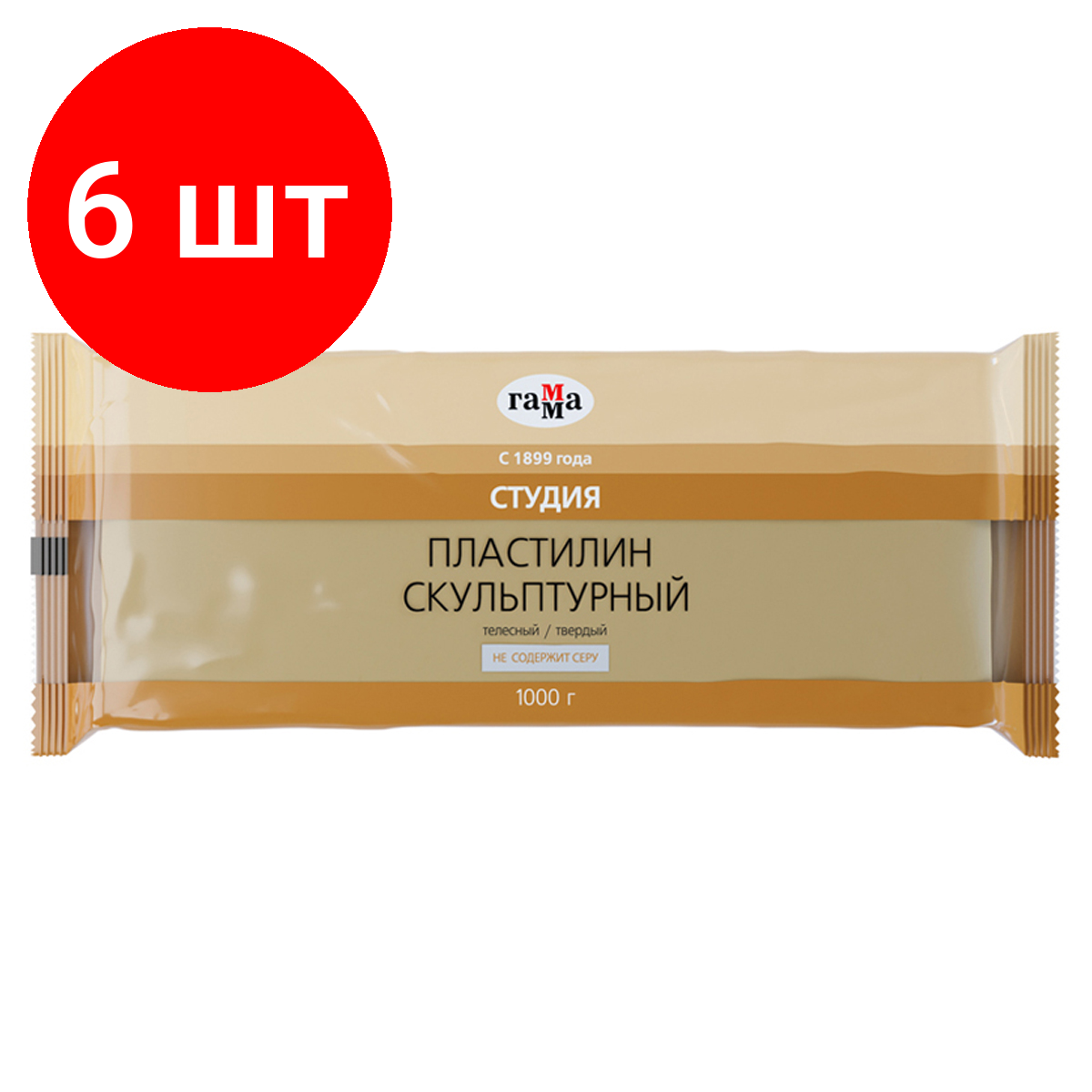 Комплект 6 шт, Пластилин скульптурный Гамма "Студия", телесный, твердый, 1кг, пакет информация: