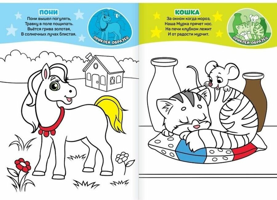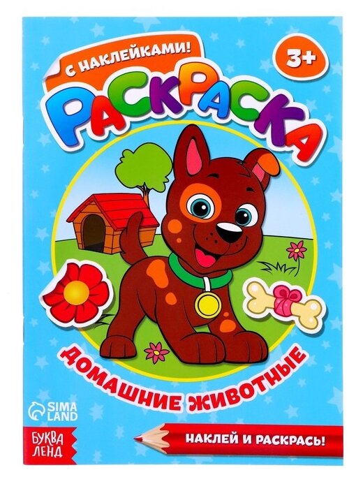 10 цен на Раскраска с наклейками «Домашние животные», 16 стр.