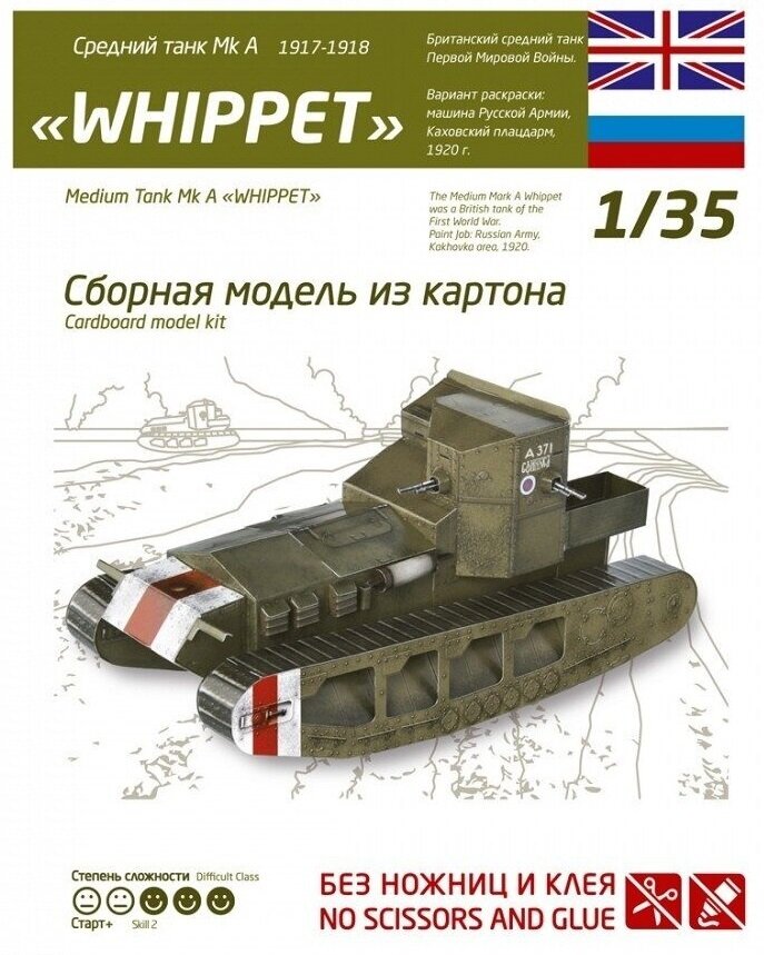 Масштабная сборная модель из картона Умная бумага 3D Средний танк Mk A "WHIPPET" Русская армия 1920 Военная техника информация:
