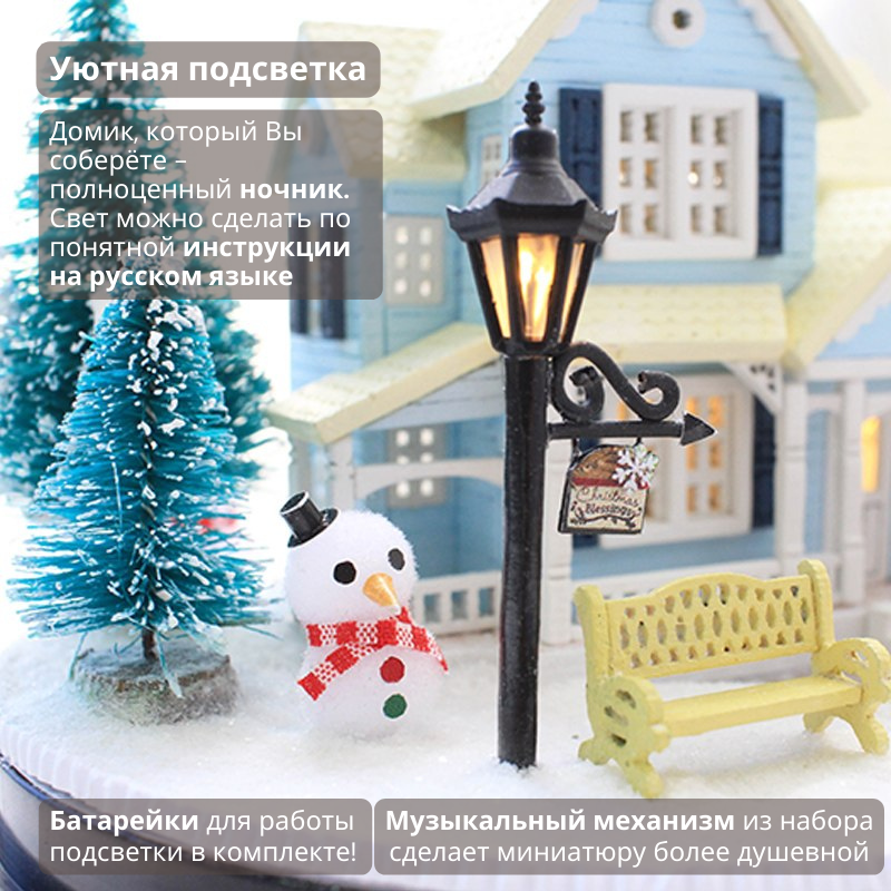 | Комплектация | батарейки / Иллюстрированная инструкция на русском языке / уютная светодиодная подсветка / белый клей / пинцет для сборки / детали для сборки / музыкальный механизм / купол для защиты от пыли. Подробную комплектацию читайте в описании. |