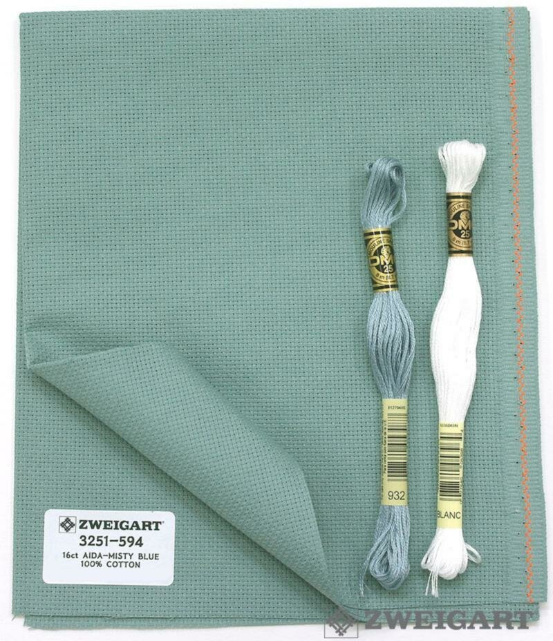 10 цен на Канва для вышивания Zweigart 3251/594 Stern-Aida 16 (36х46см) туманно-синий