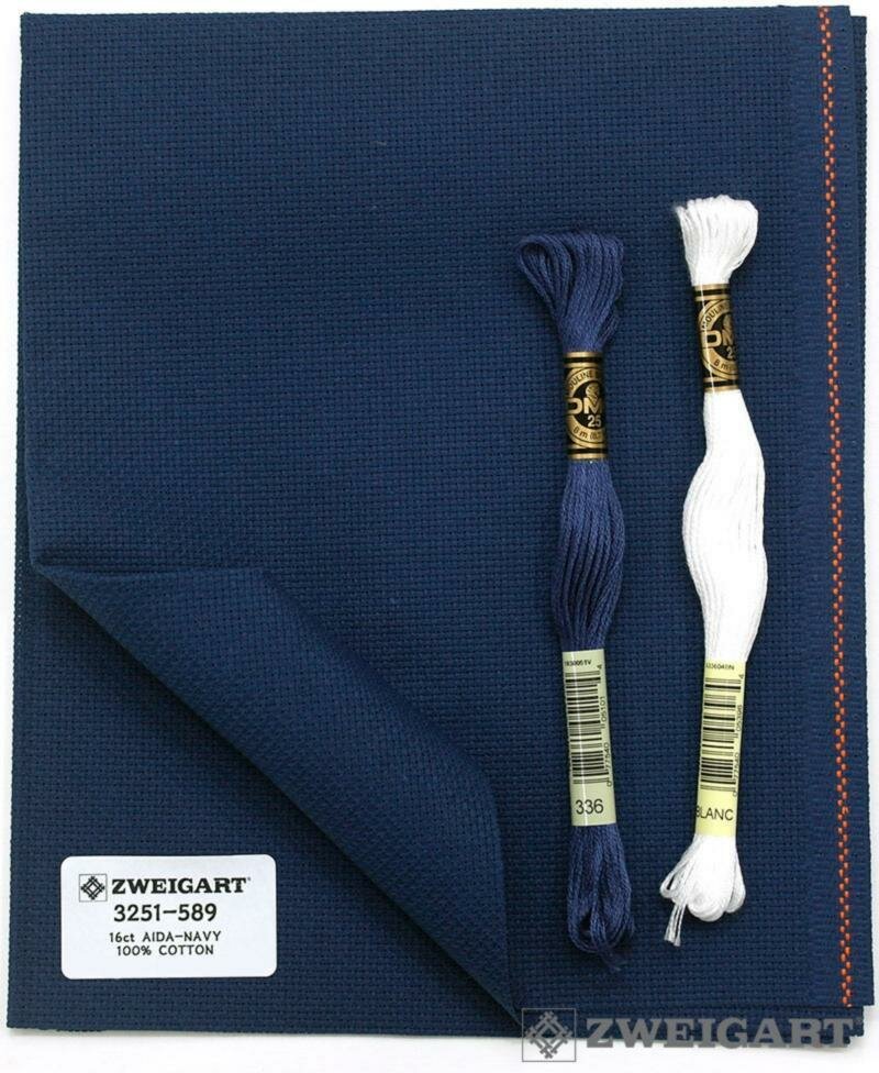 10 цен на Канва для вышивания Zweigart 3251/589 Stern-Aida 16 (36х46см) темно-синий