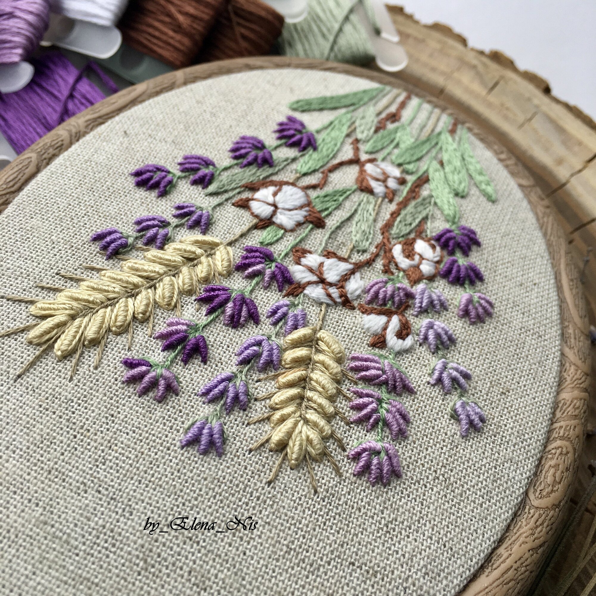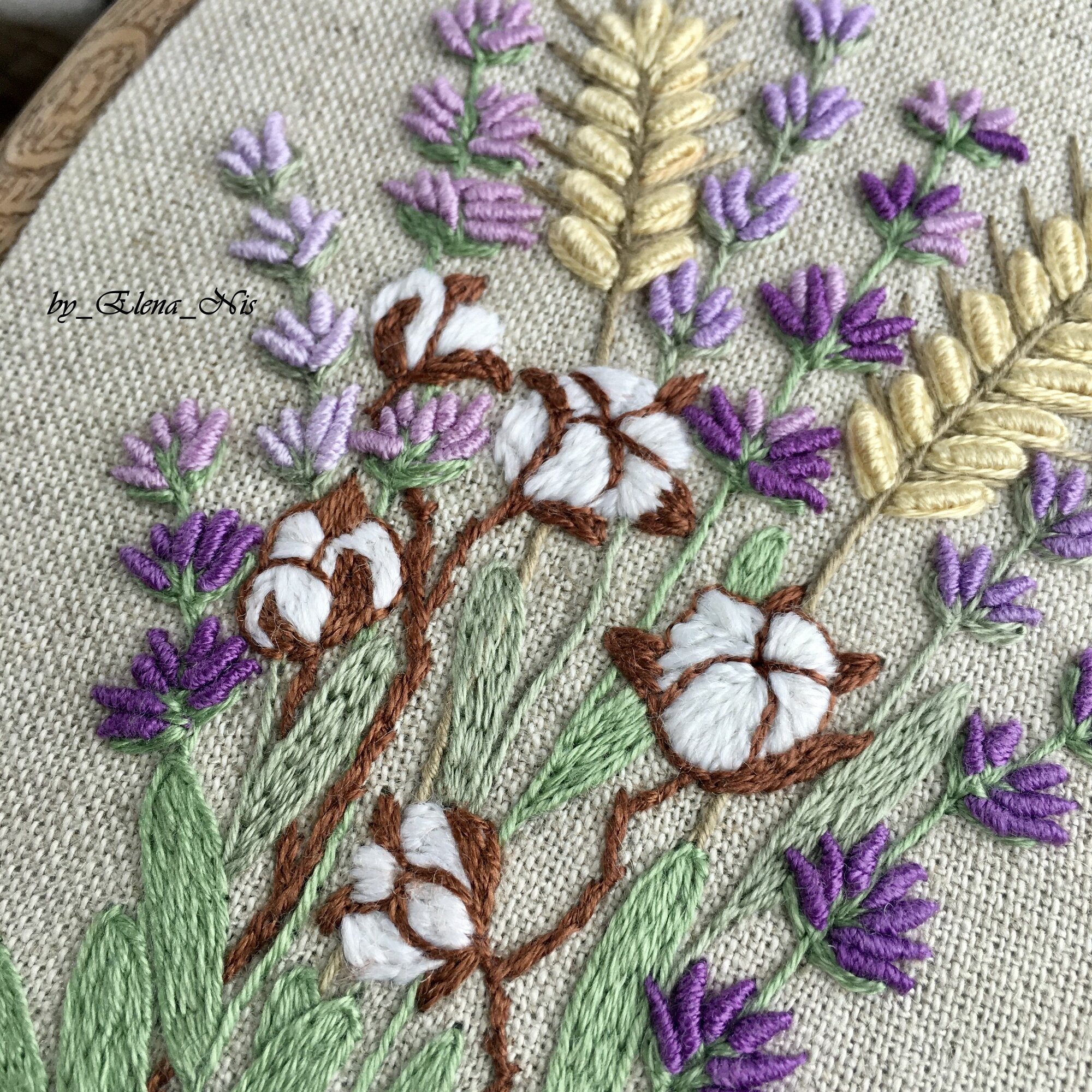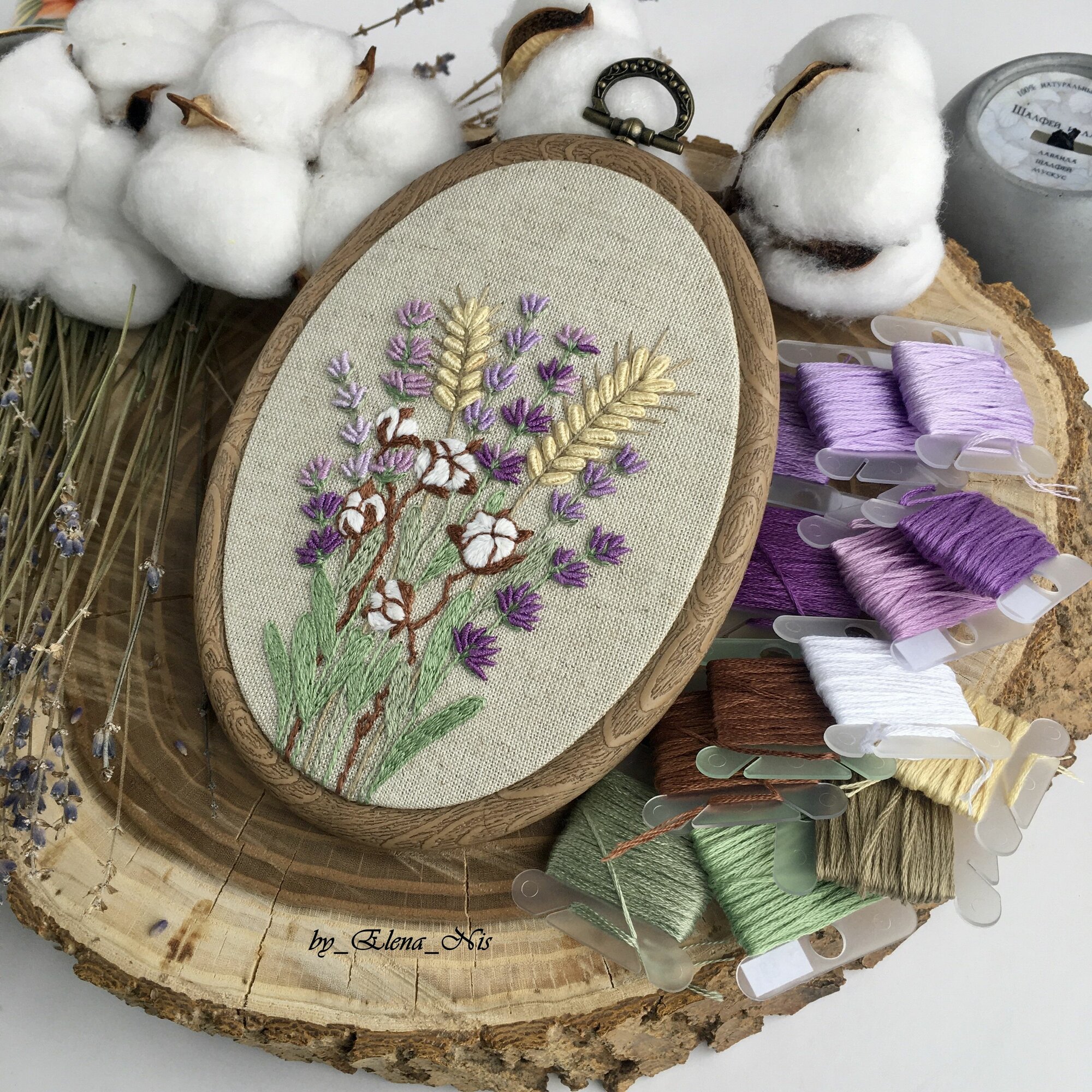 Отзывы на Набор для вышивки Хлопок, лаванда и пшеница, ботаническое вышивание полевых цветов, овальное панно на стену 10 на 13 см