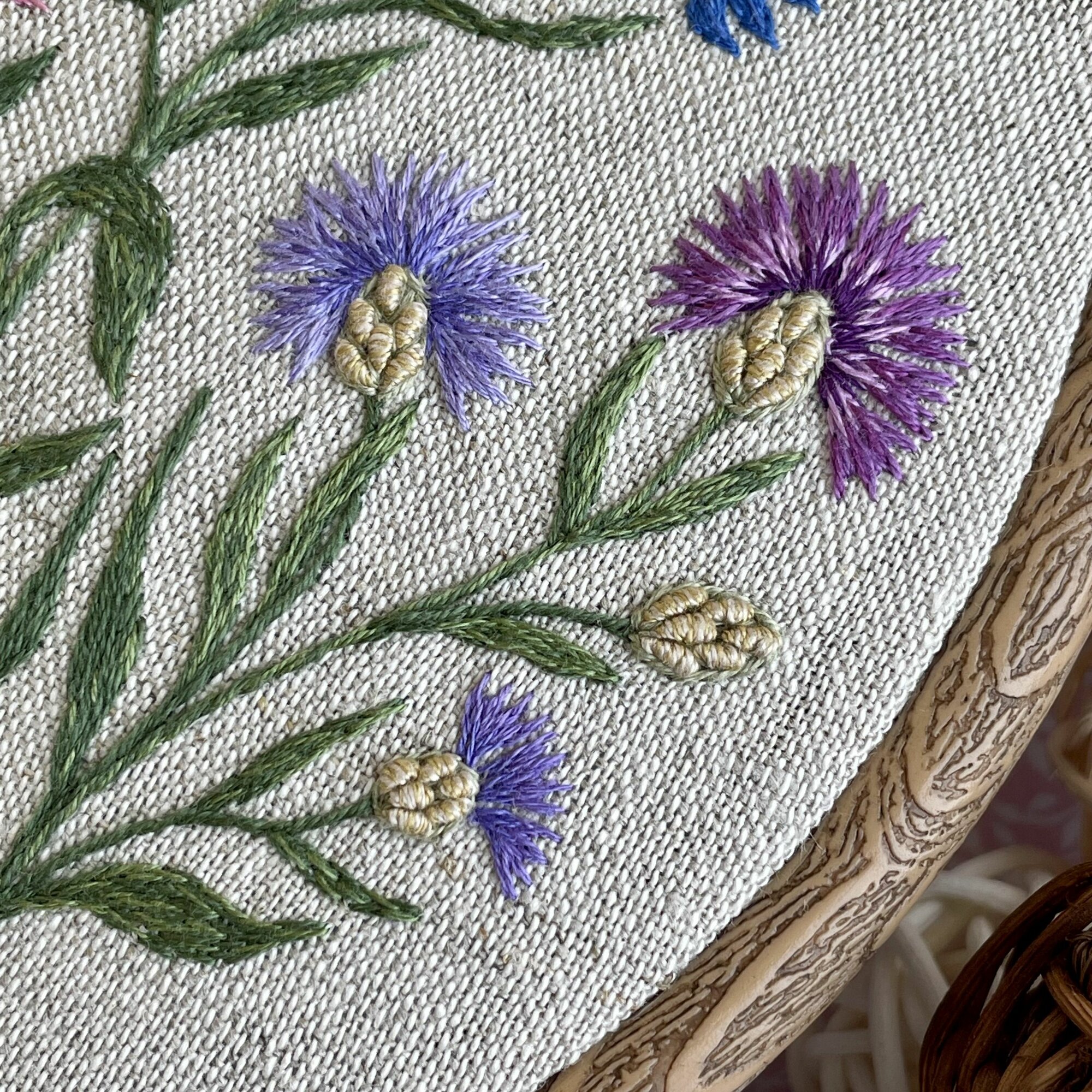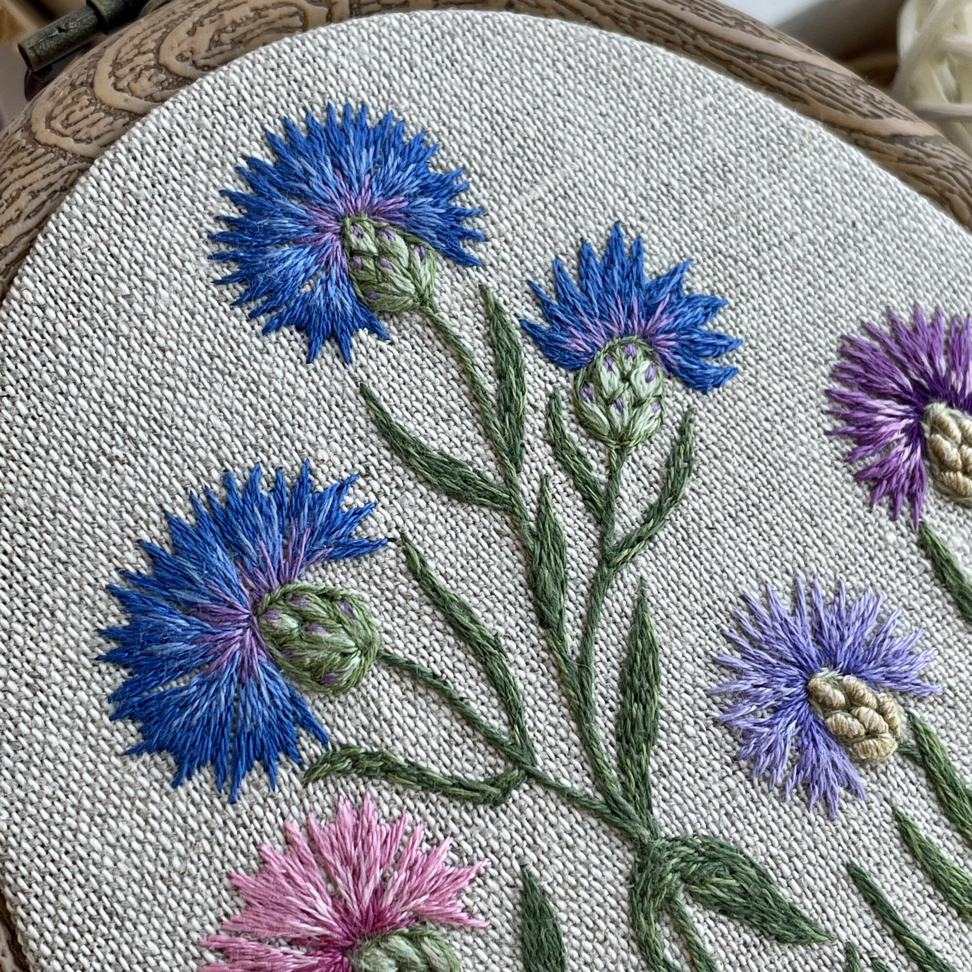 10 цен на Набор для вышивания Васильки, ботаническая вышивка полевых цветов, овальное панно на стену 13 на 18 см