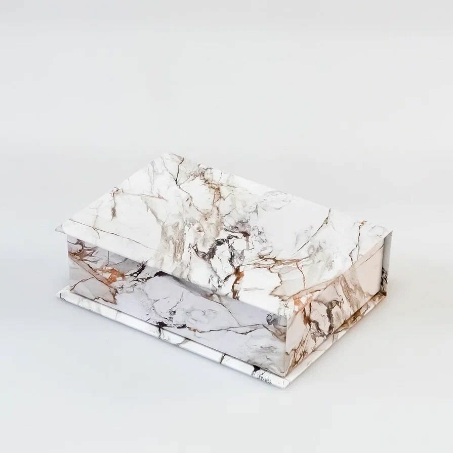 10 цен на Подарочная Коробка - Шкатулка Cartonnage для рукоделия средняя, 205 x 145 x 75 мм. "Мрамор", белый