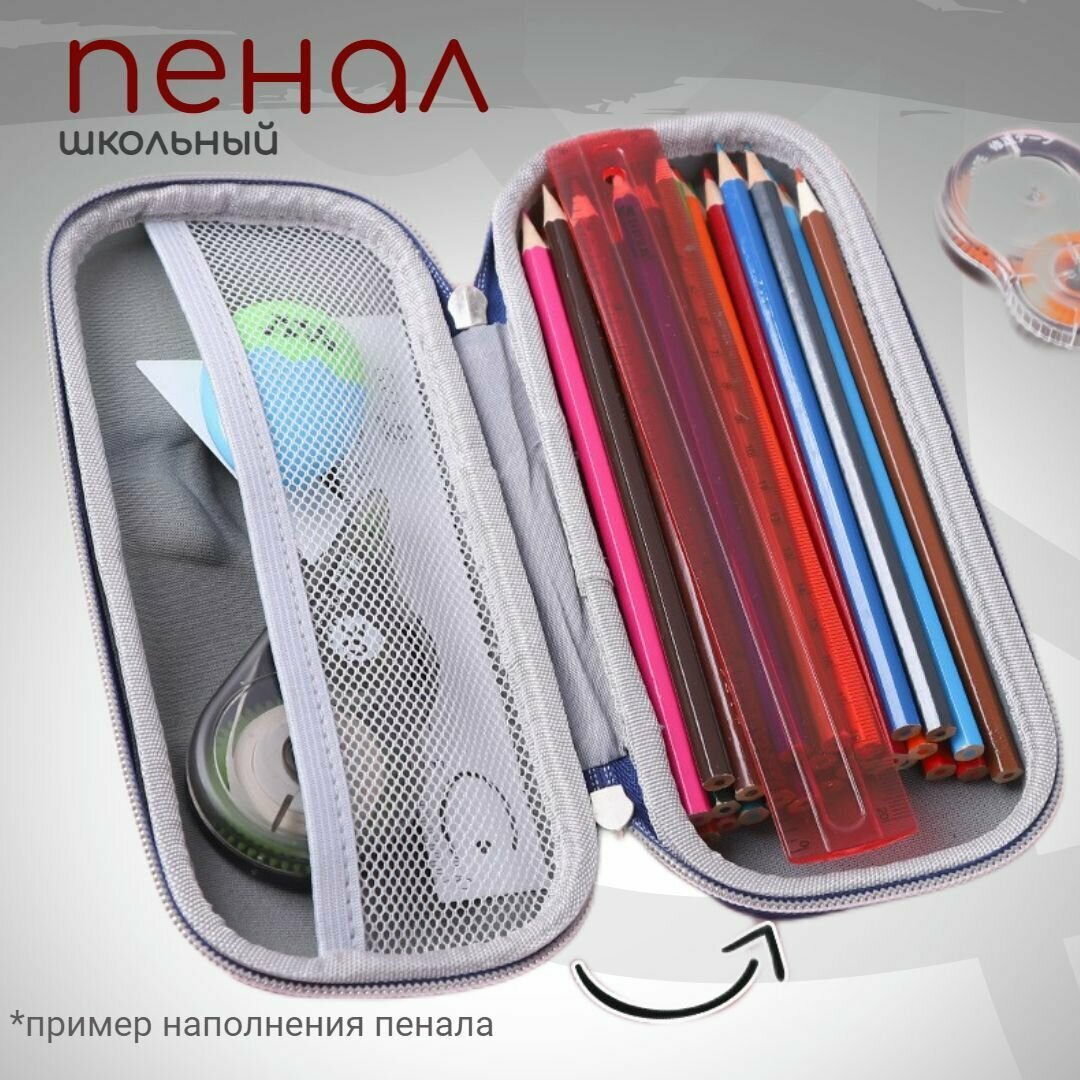 Пенал школьный для мальчиков для карандашей и ручек с 1 отделом, откидной планкой и карманом, канцелярия для школы, EVA, 22х10х5 см, Юнландия, 273187