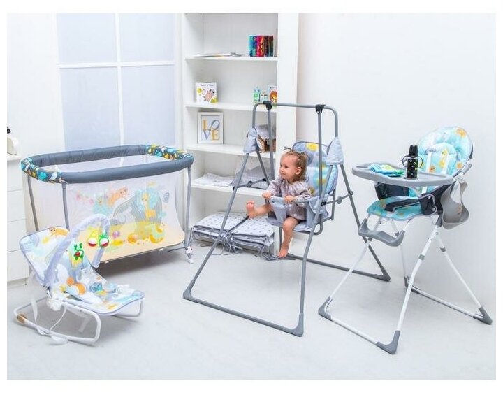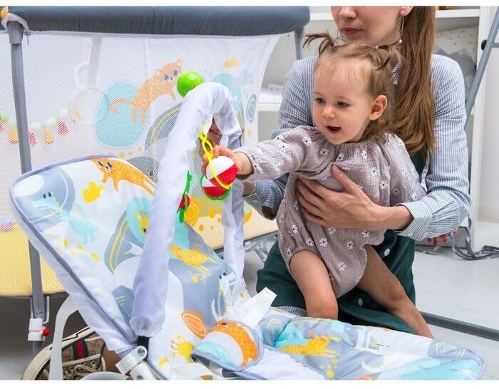 Шезлонг - качалка для новорождённых «Веселые зверята», игровая дуга, игрушки микс