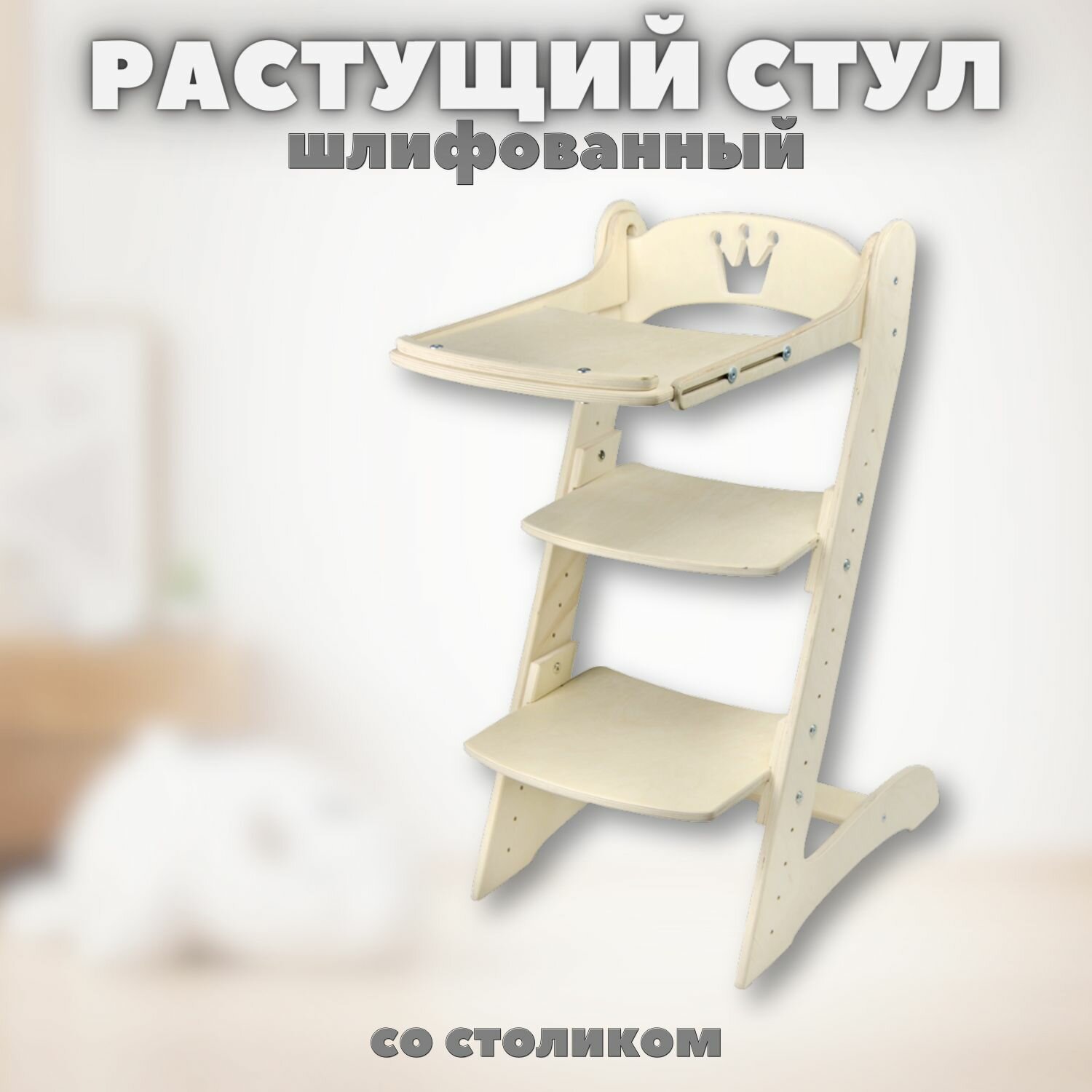 10 цен на Детский растущий стул со столиком для кормления "Берёзка" шлифованный с короной