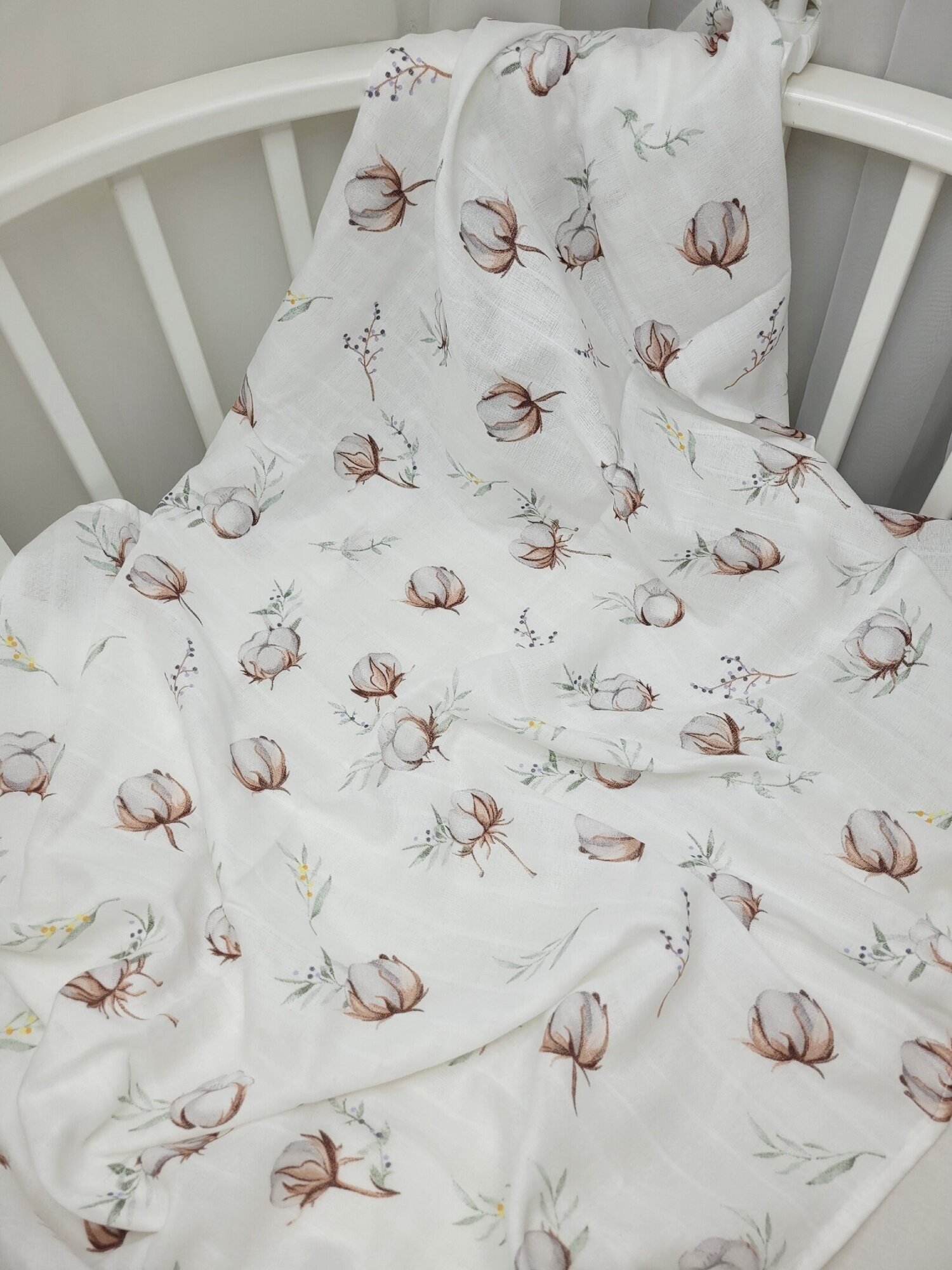 Пеленка муслиновая "Цветы хлопка" размер 100х120 см информация: