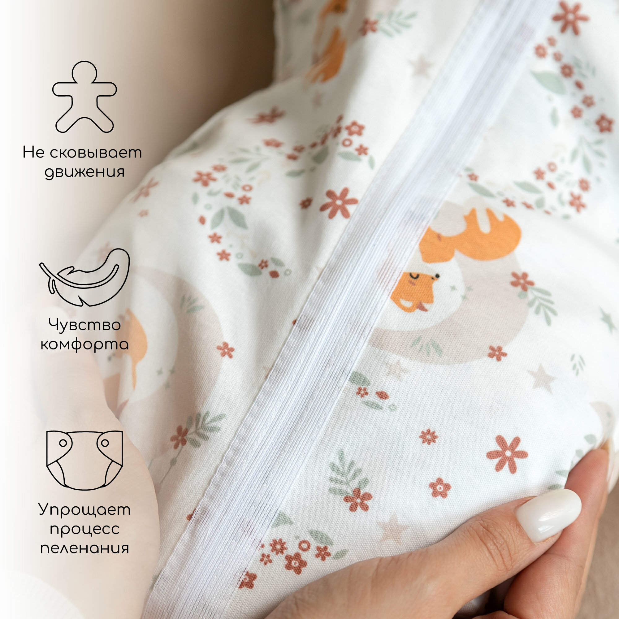 Пеленка (кокон на молнии) с шапочкой Amarobaby (Soft Hugs) 56/68 Лиса информация: