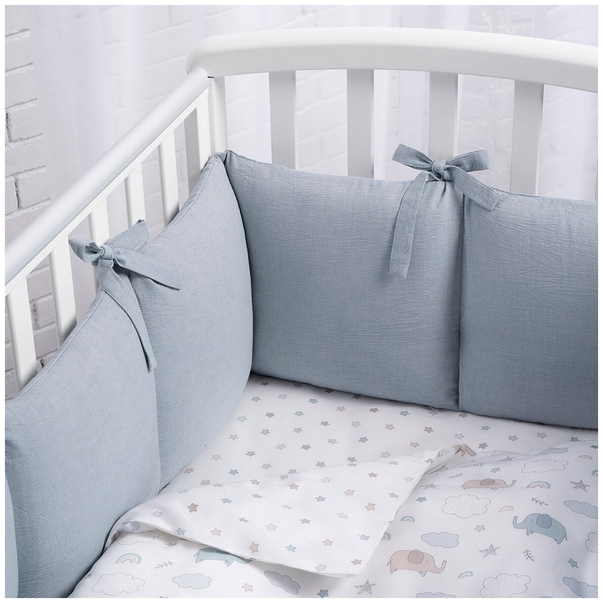 Бортики в кроватку Perina Soft Cotton, для новорожденных, съемные чехлы, гипоаллергенные, голубые, 360х29 см, хлопок