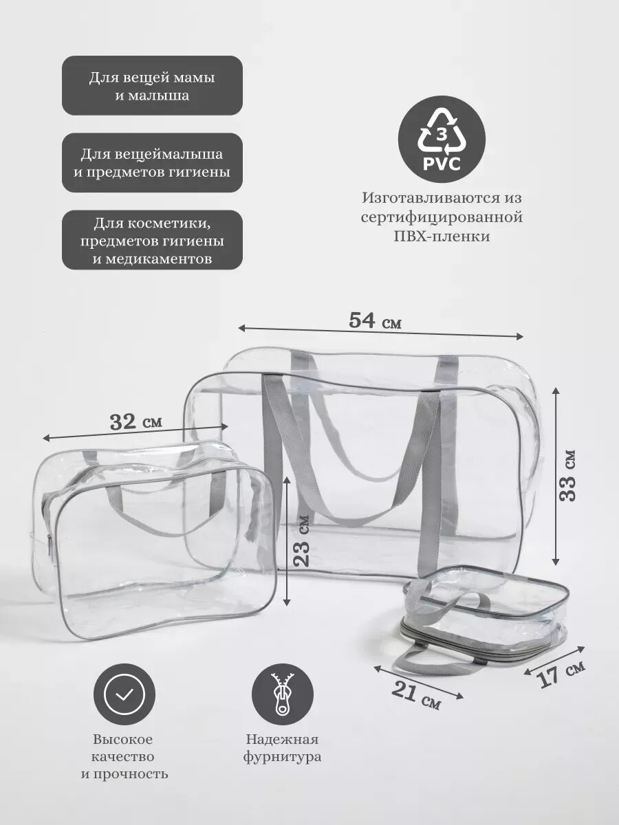 Отзывы на Прозрачные сумки в роддом 3 шт., бренд "Золотой октябрь", цвет прозрачный серый