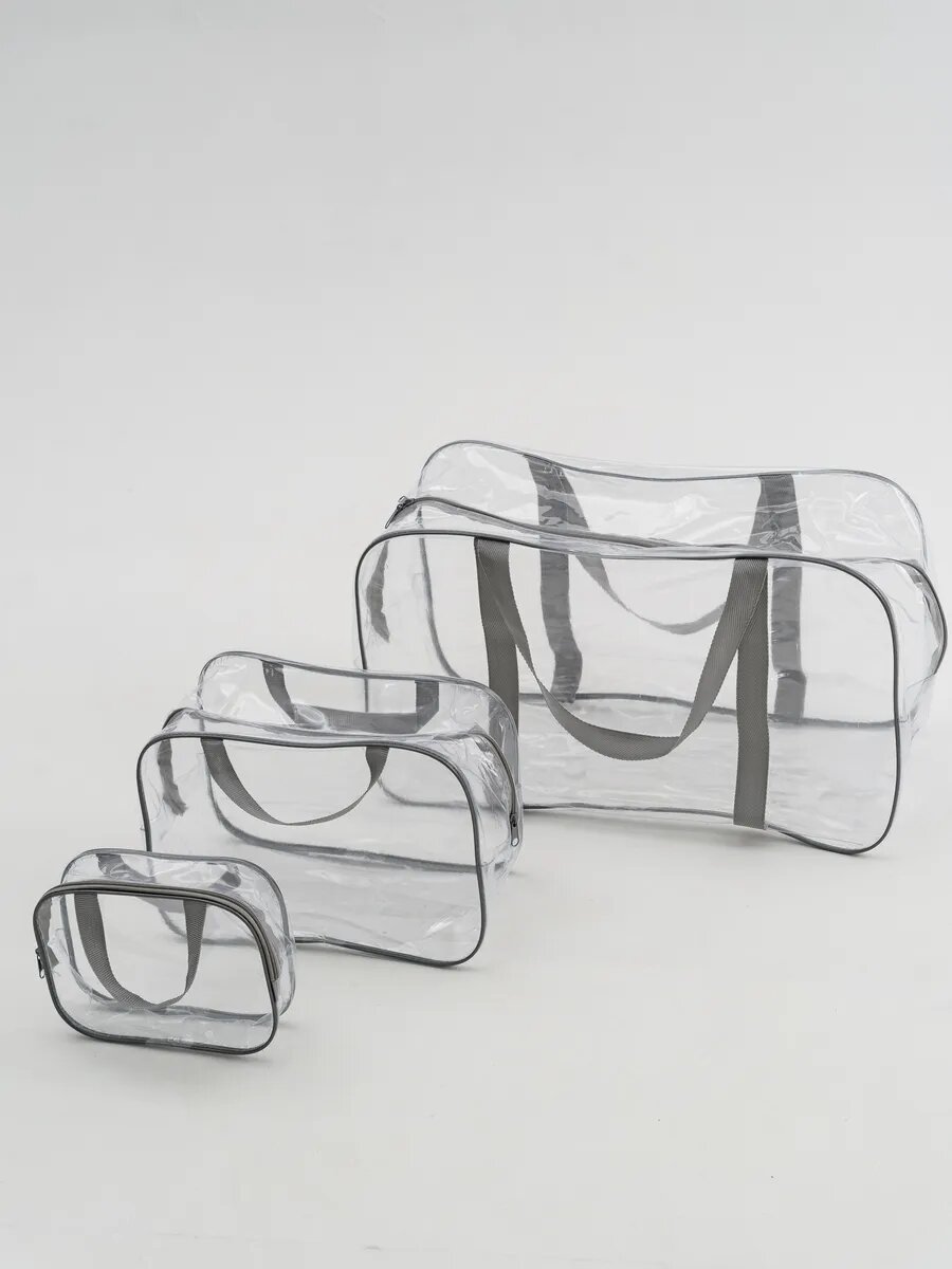 Прозрачные сумки в роддом 3 шт., бренд "Золотой октябрь", цвет прозрачный серый информация: