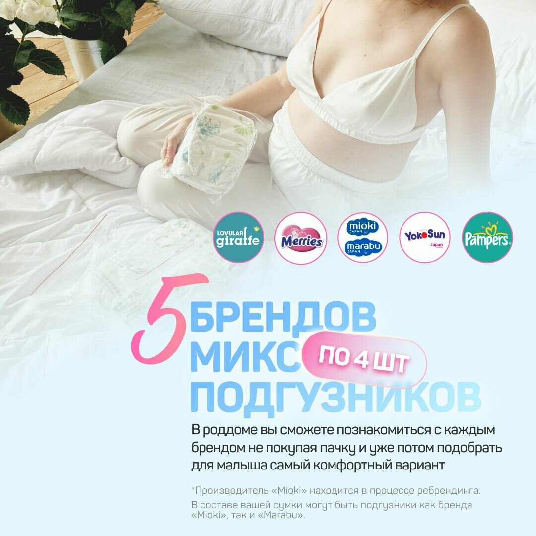 Сумка в роддом для мамы и малыша готовая с наполнением, 30 предметов + 3 сумки, комплектация "Стандарт+", матовая информация: