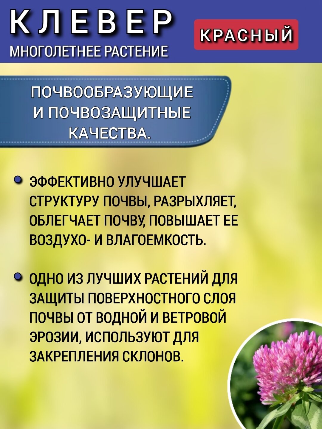 Семена сидерат "агроуспех" Клевер красный 3шт, натуральное, органическое удобрение информация: