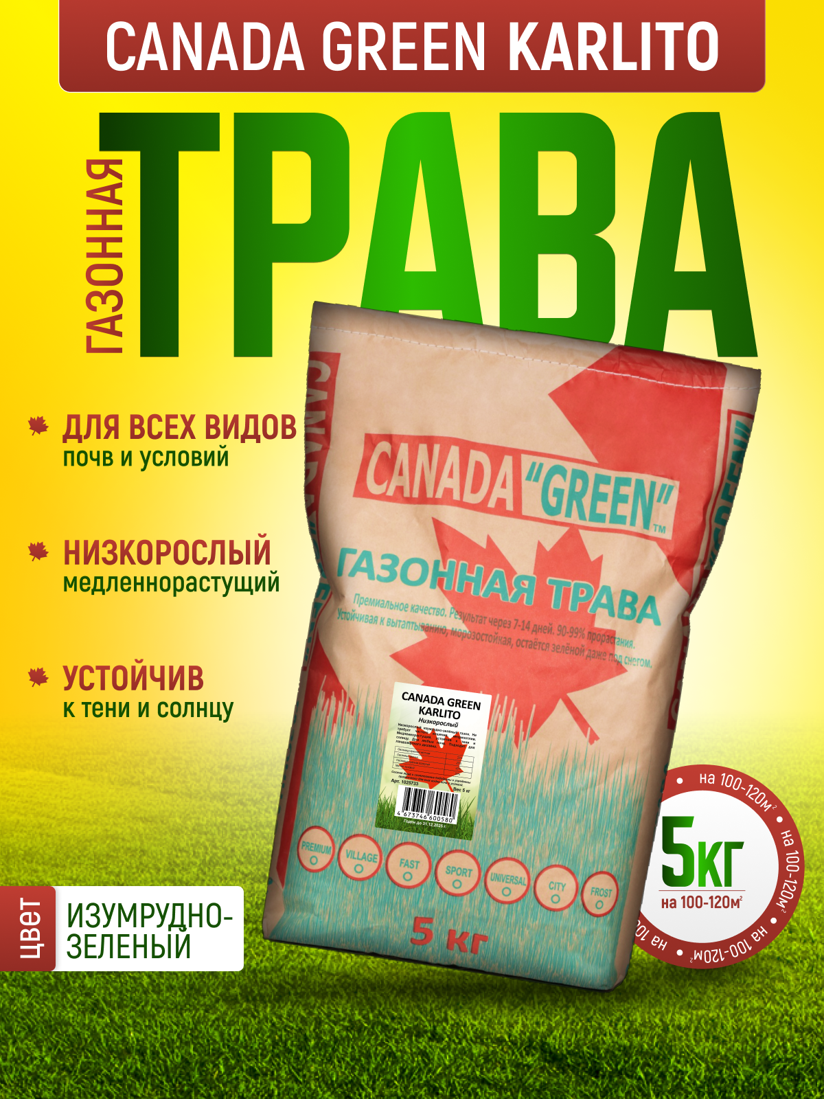 10 цен на Газонная трава семена Канада Грин Низкорослая Карлито 5 кг / Canada Green Karlito 5 кг / мятлик, овсяница