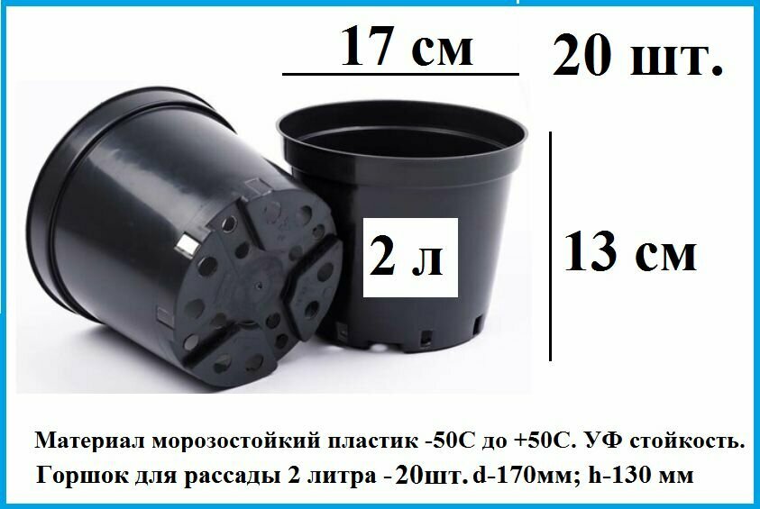 Горшок для рассады 2 литра - 20шт. d-17см; h-13 см информация:
