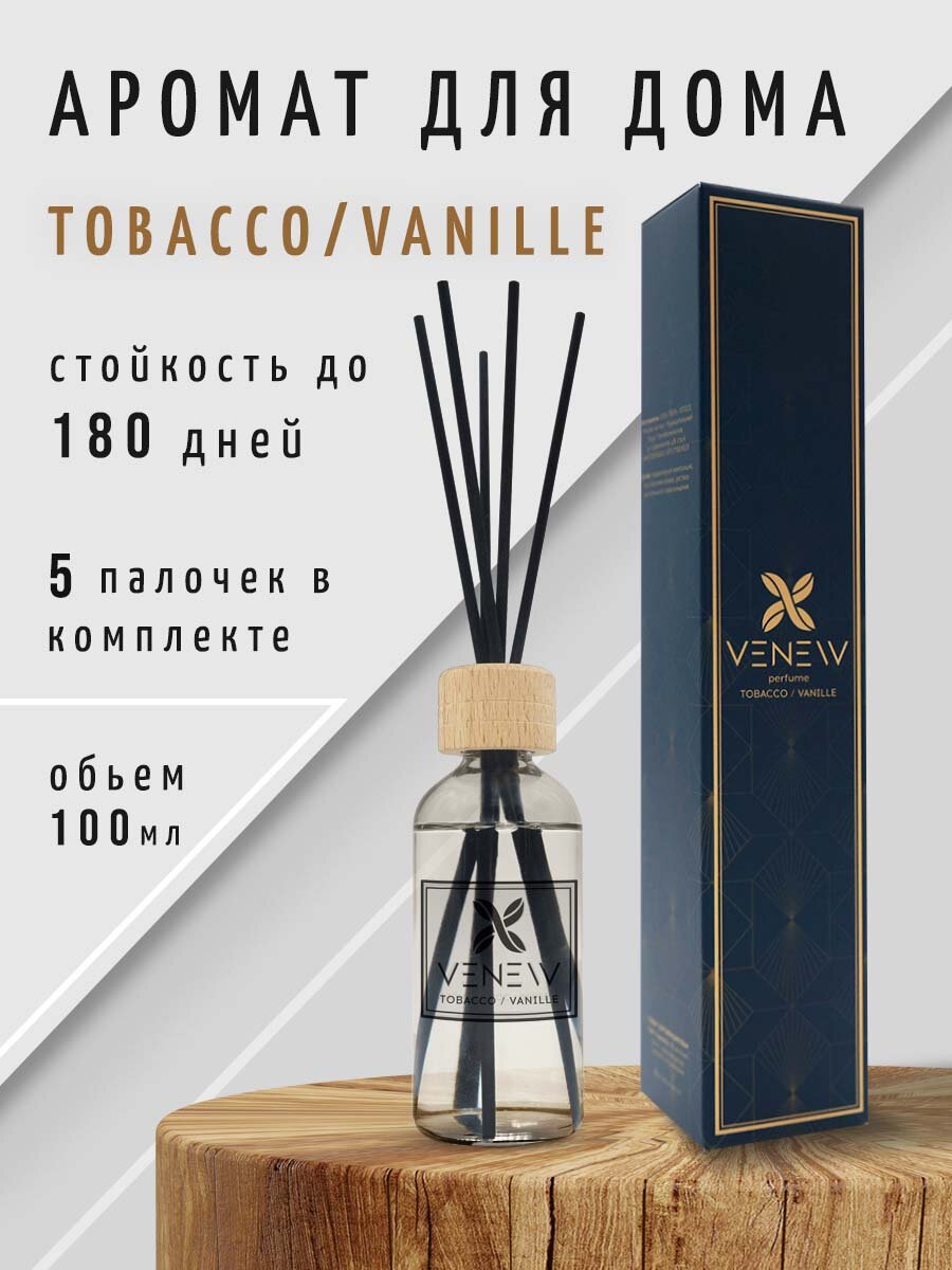 Диффузор для дома, ароматизатор с палочками VENEW "Табак / ваниль" 100 мл информация: