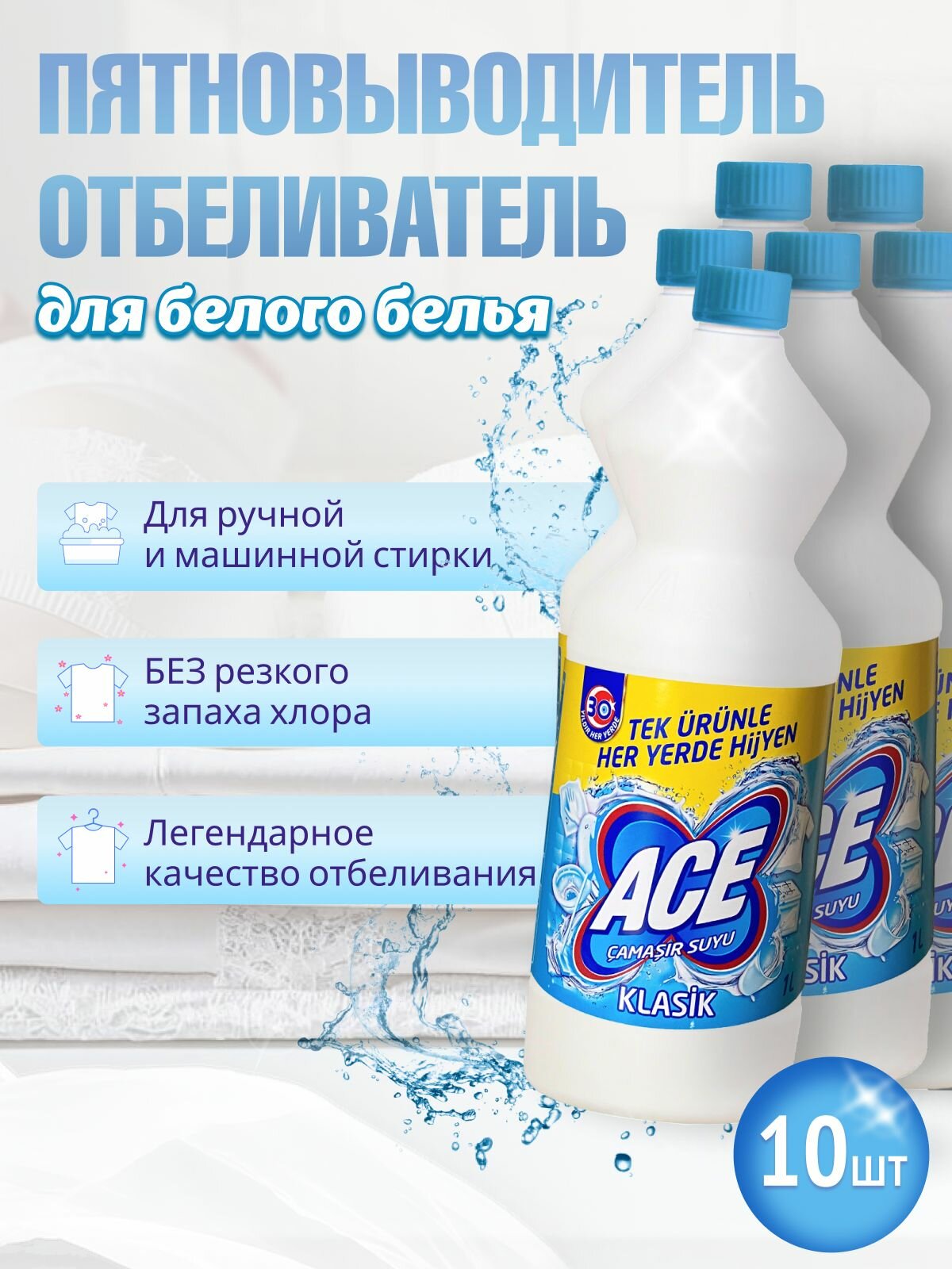Отбеливатель и пятновыводитель ACE для белого белья Classic 1л 10шт информация: